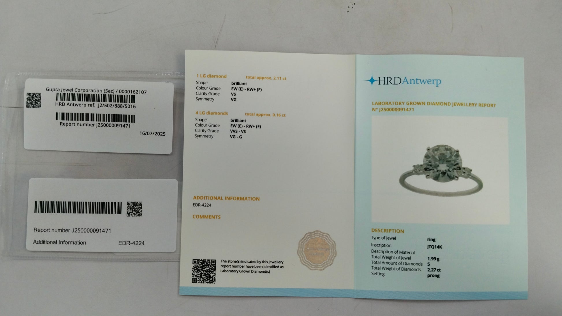 2.27-Carat Lab-Grown Diamond Round Brilliant Ring - HRD Certified