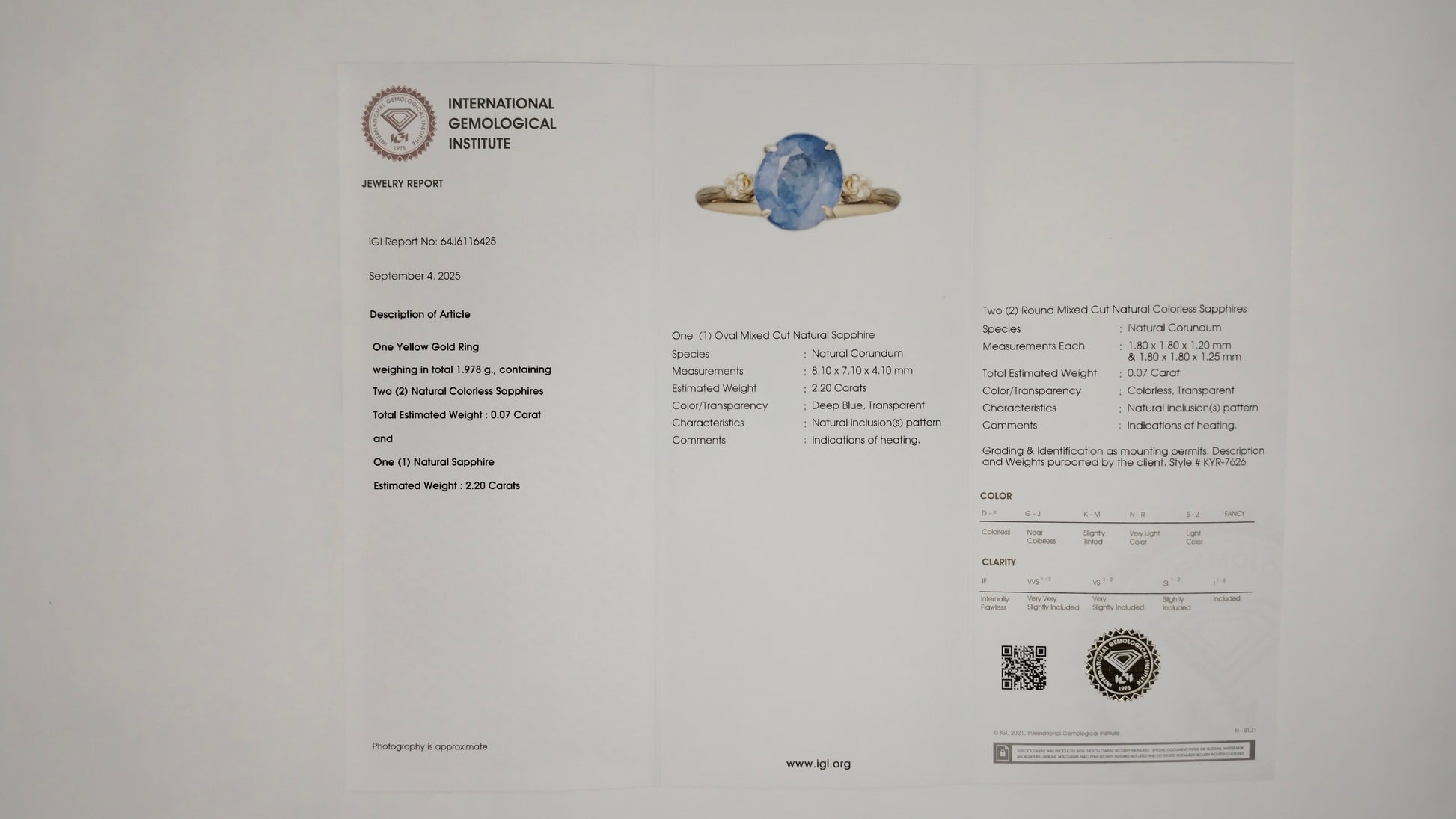 2.27 Total Carat Natural Corundum Sapphire 14K Gold Ring
