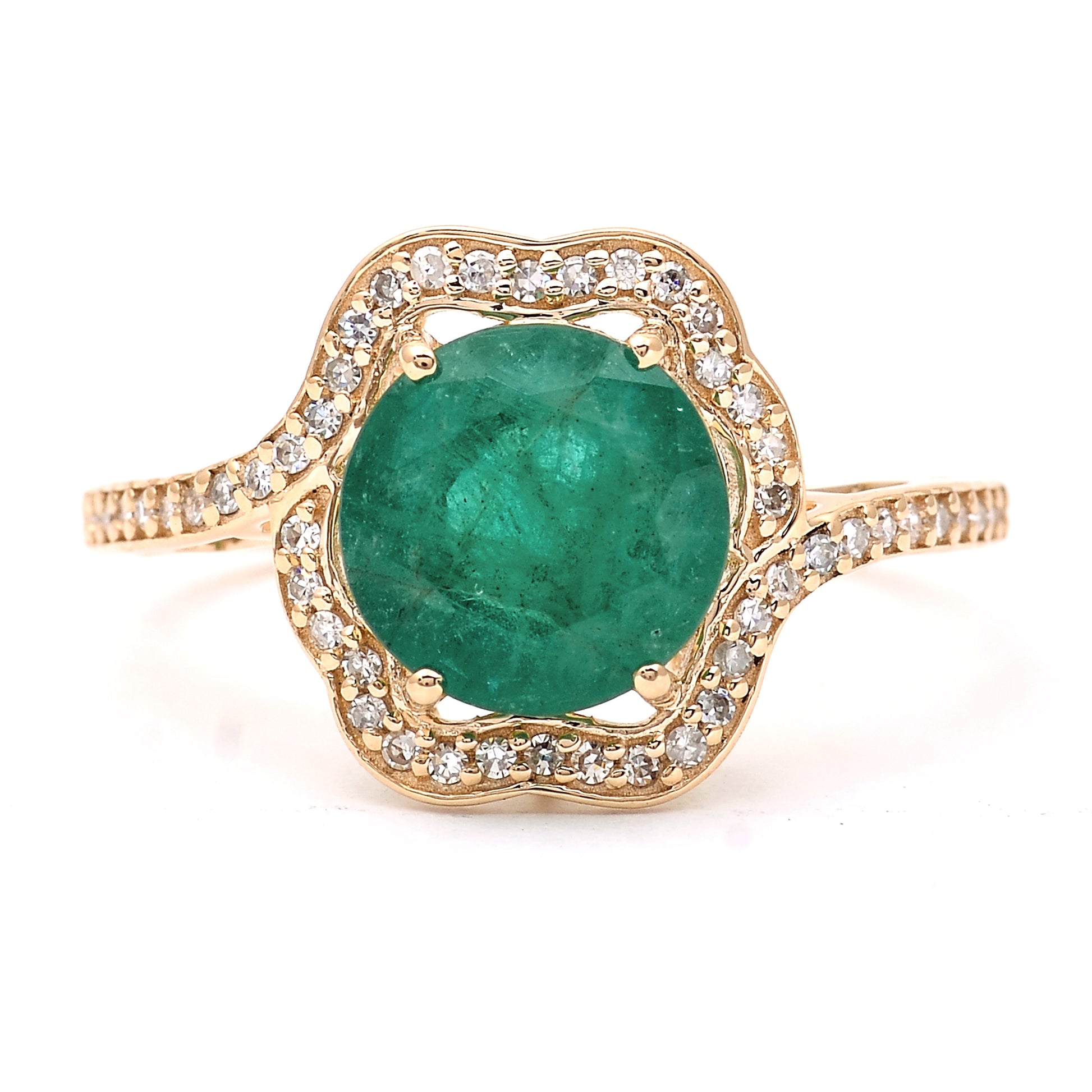 2.27 Ct Round Mixed Cut Natural Emerald 14K Gold Ring