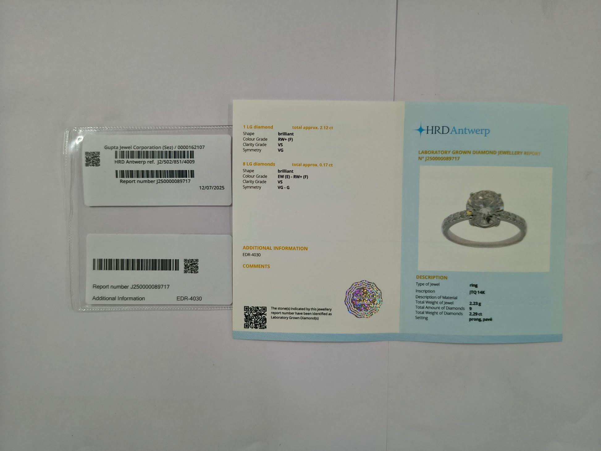 2.29 Carats Lab Grown Diamond 14K Gold Ring