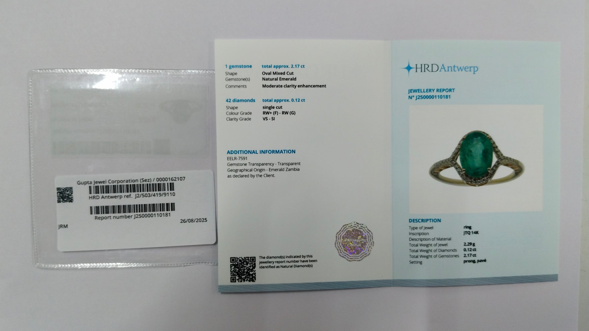 2.29 Ct Oval Mixed Cut Natural Emerald 14K Gold Ring