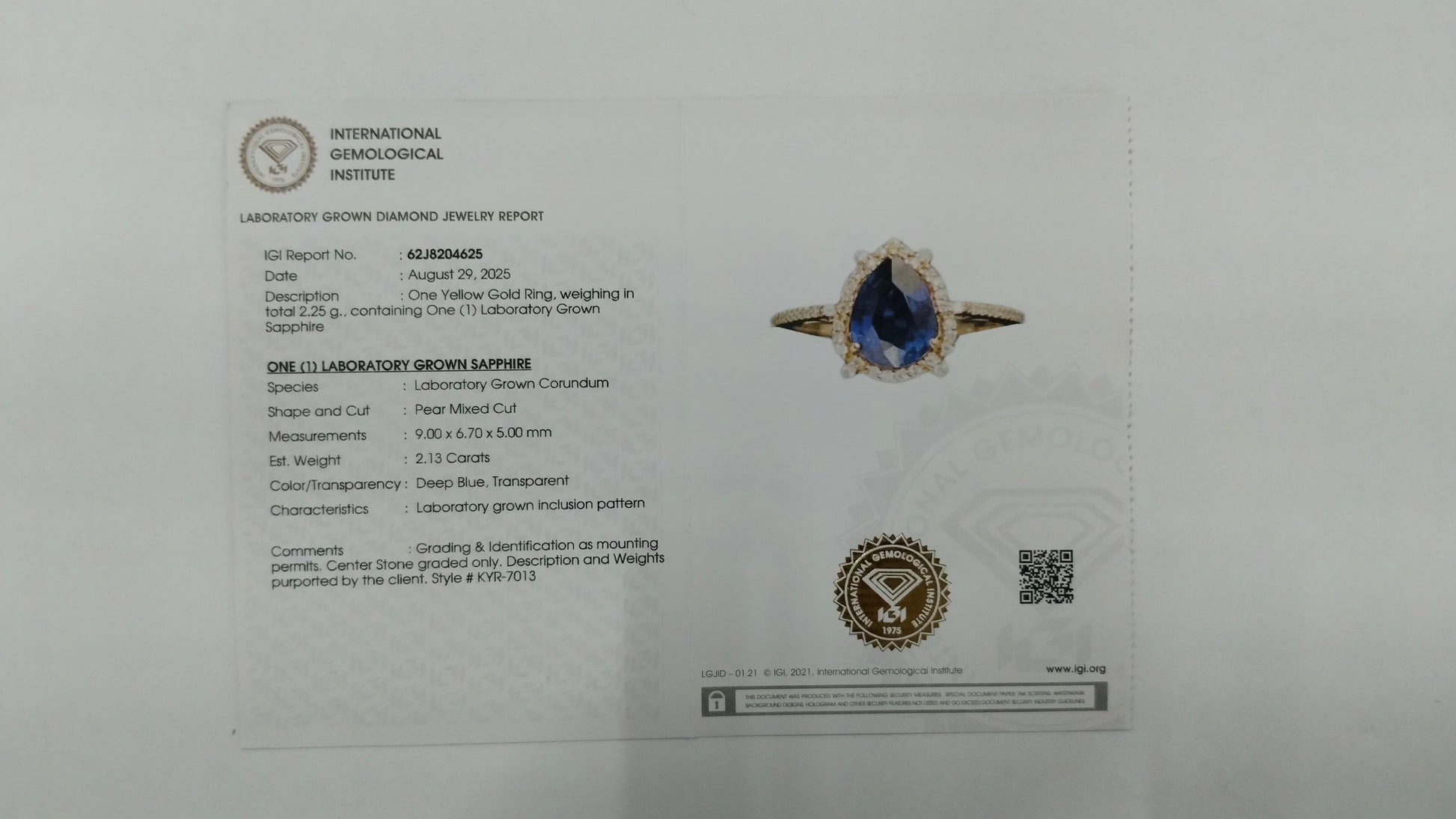 2.29 Ct Pear Mixed Cut Lab Grown Sapphire 14K Gold Ring