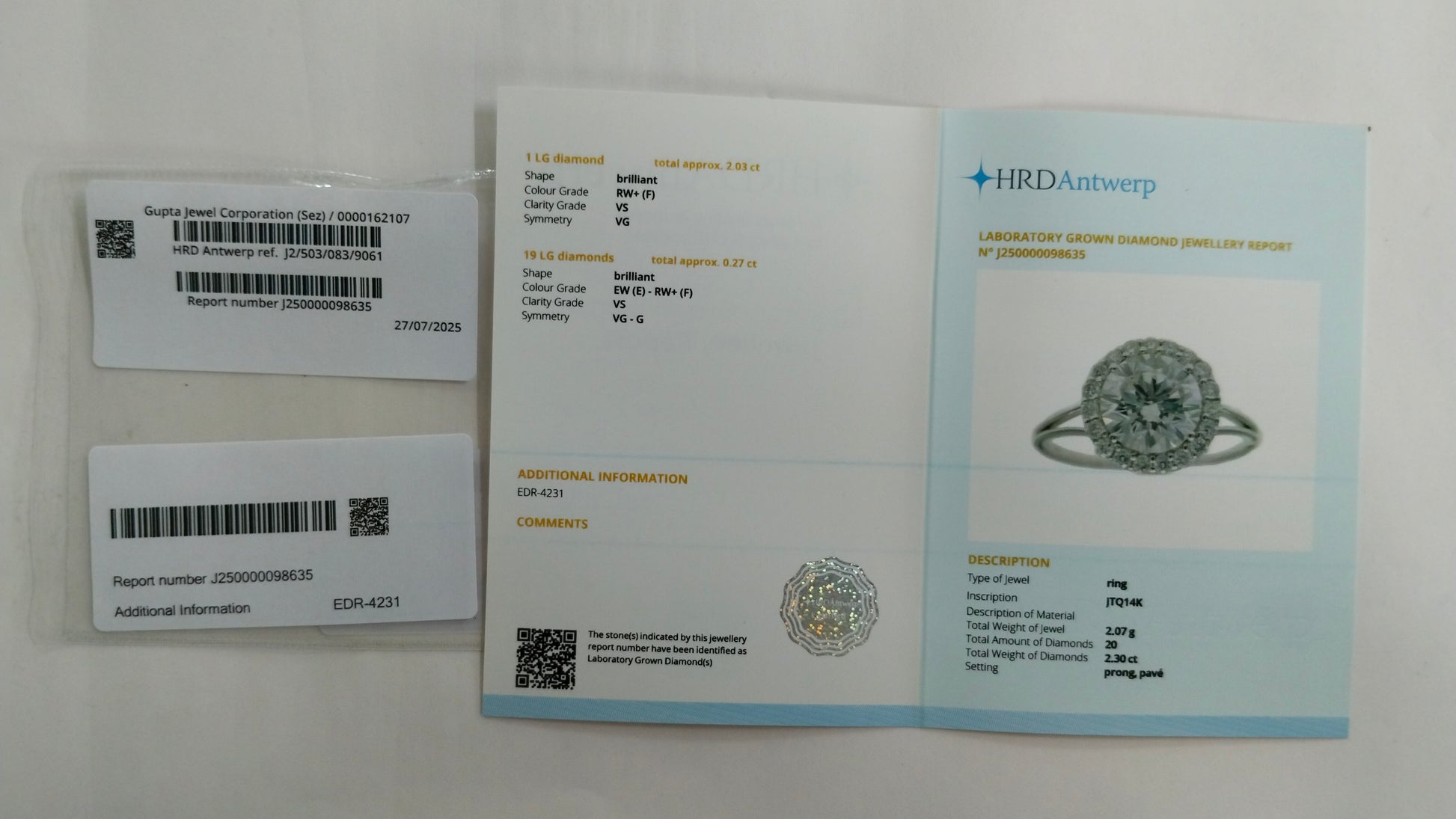 2.30-Carat Lab-Grown Diamond Round Brilliant Ring - HRD Certified