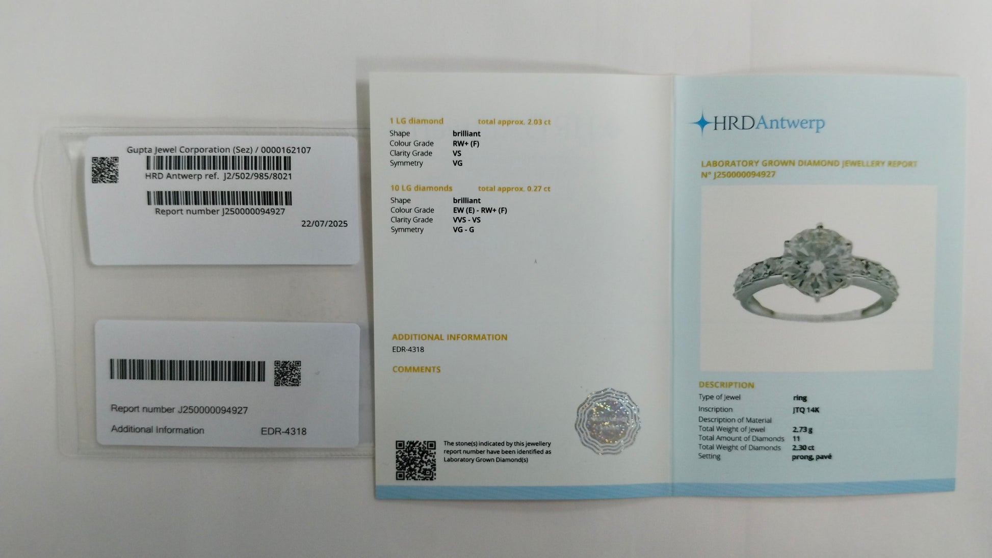 2.30-Carat Lab-Grown Diamond Round Brilliant Ring - HRD Certified