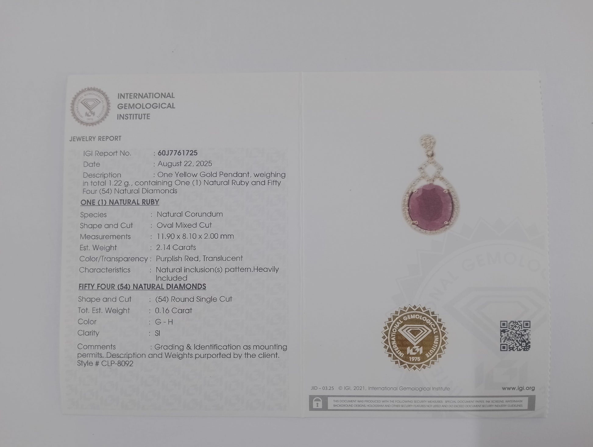 2.30 Ct Oval Mixed Cut Natural Corundum Ruby 14K Gold Pendant