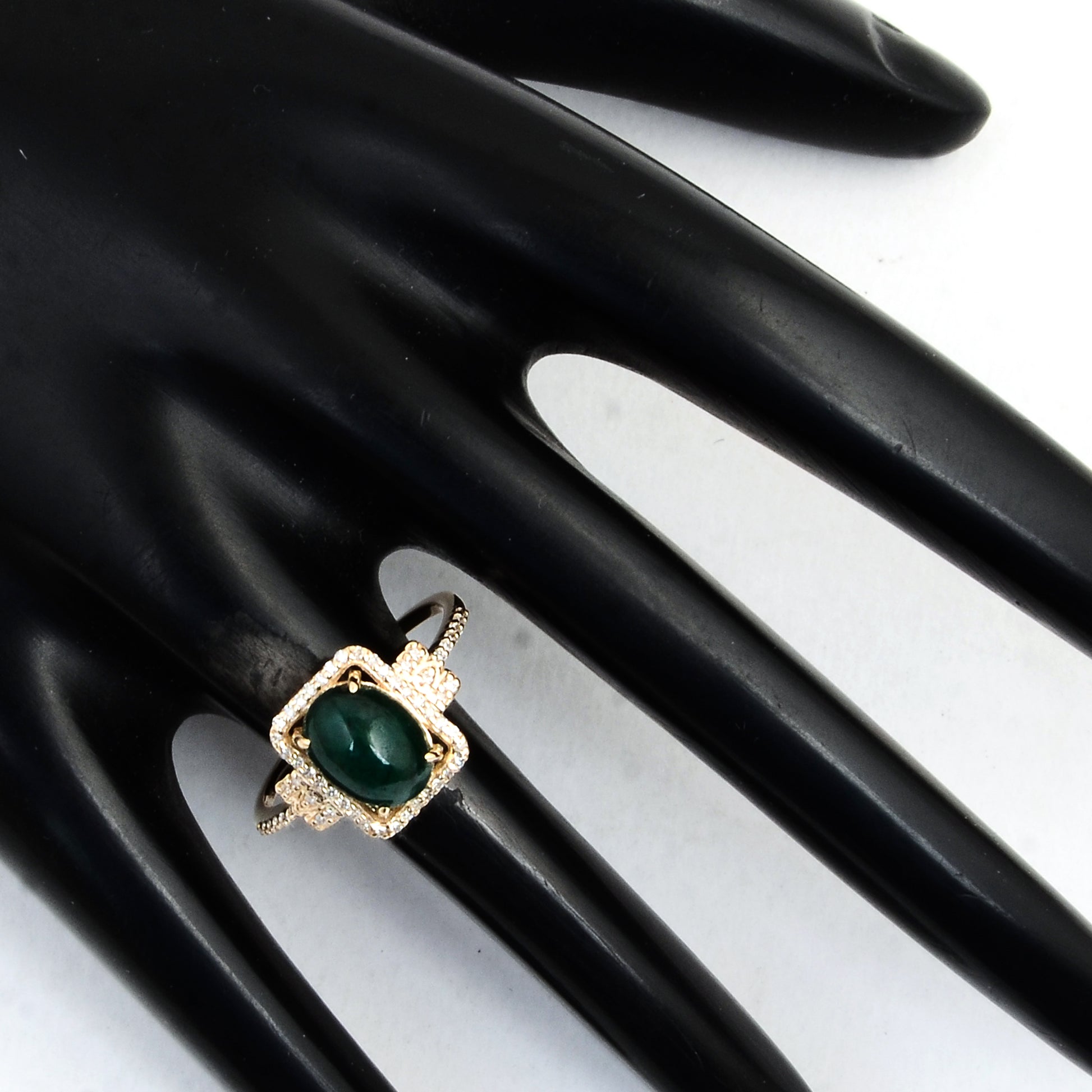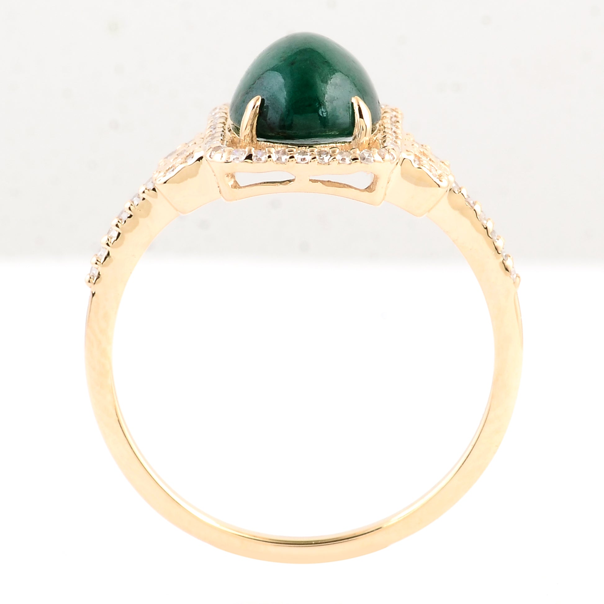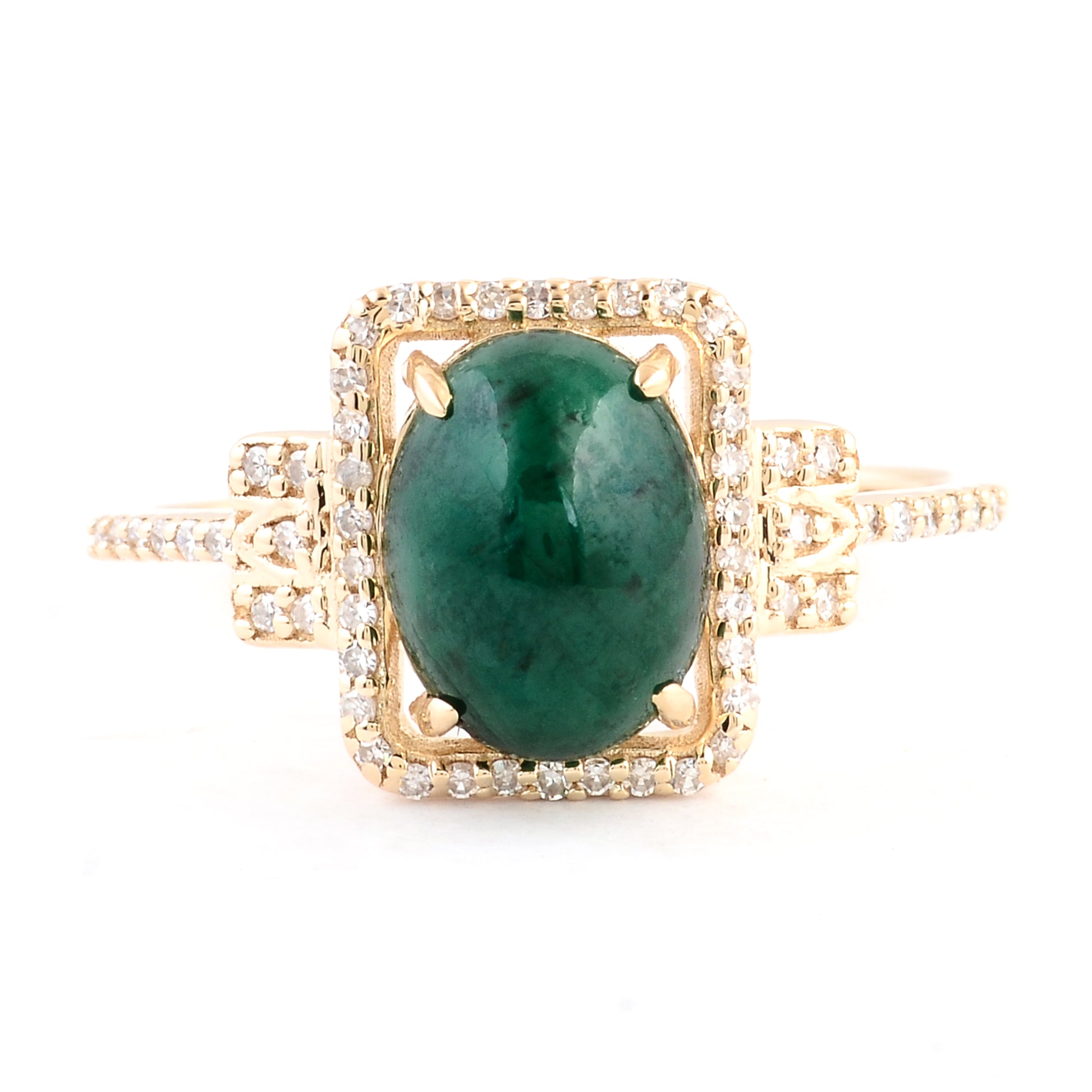 2.31 Ct Oval Cabochon Natural Beryl Emerald 14K Gold Ring