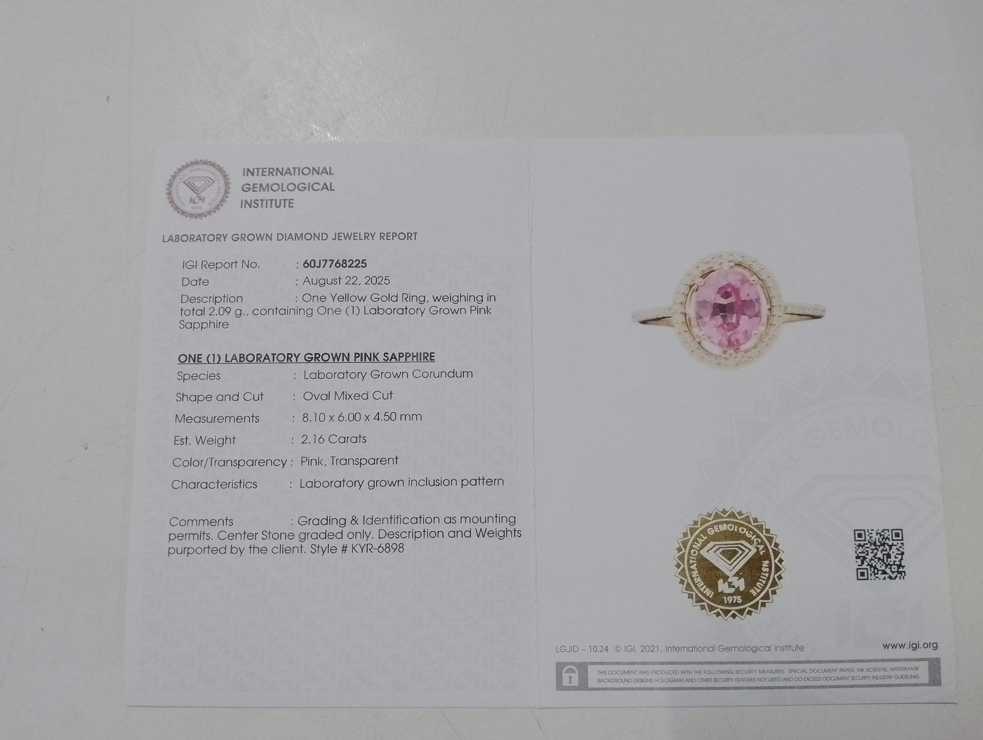 2.31 Total Carat Lab Grown Pink Sapphire 14K Gold Ring