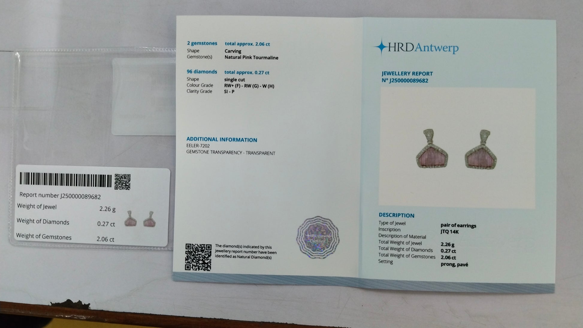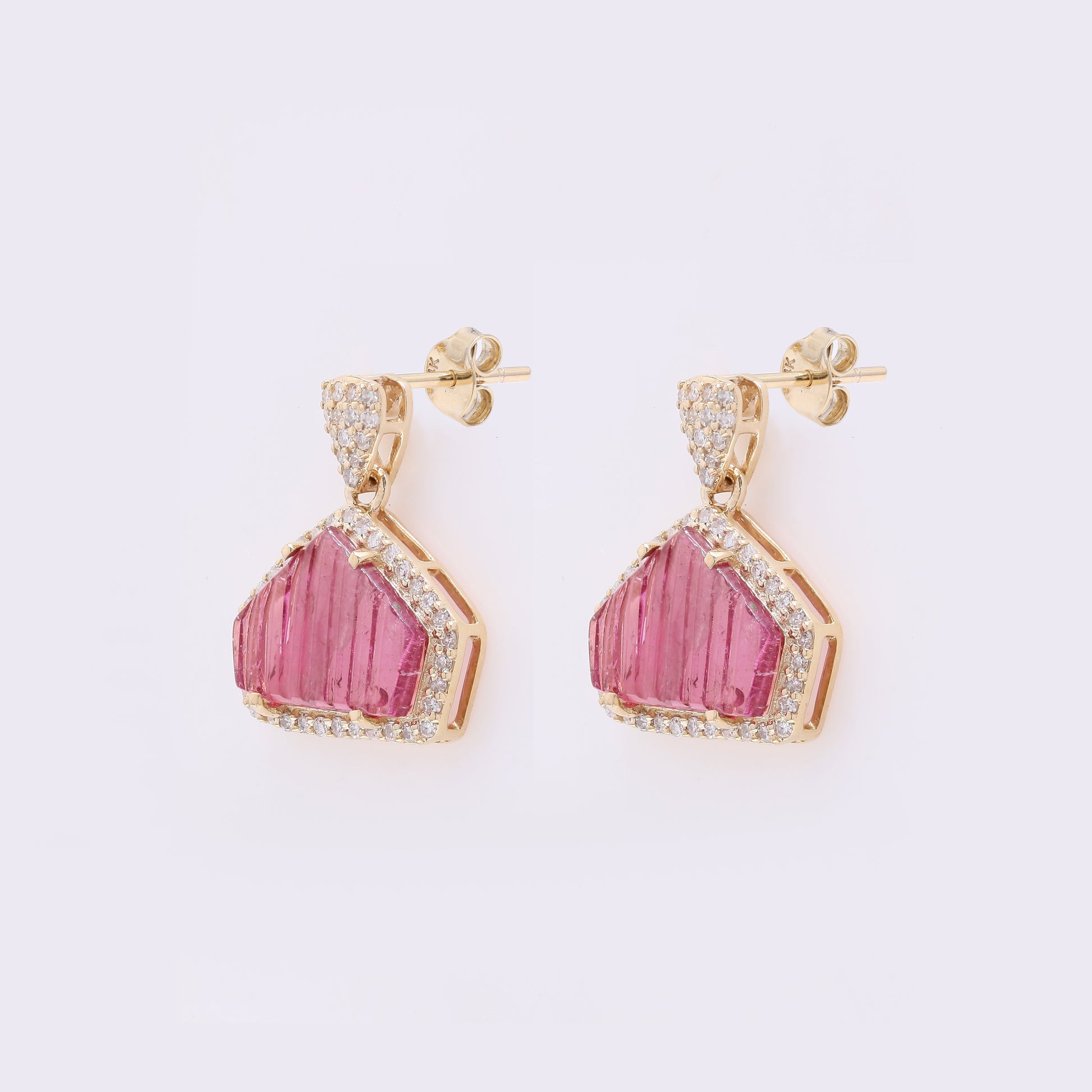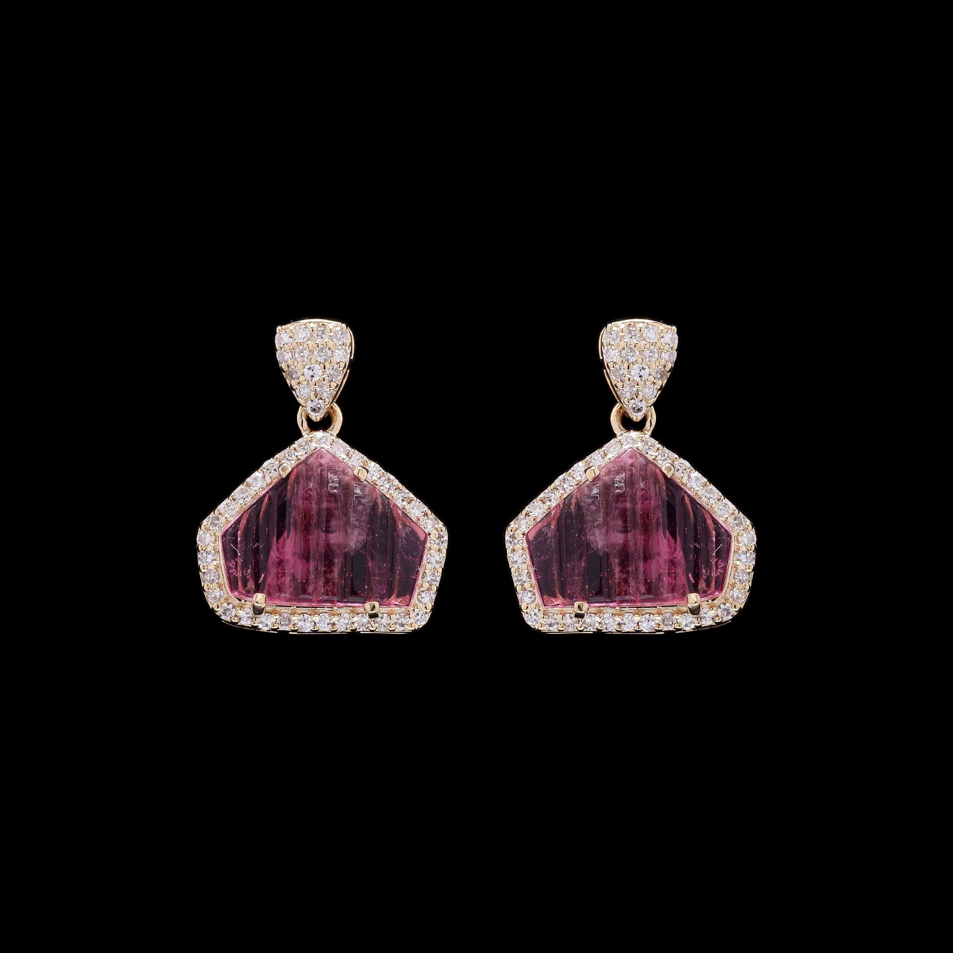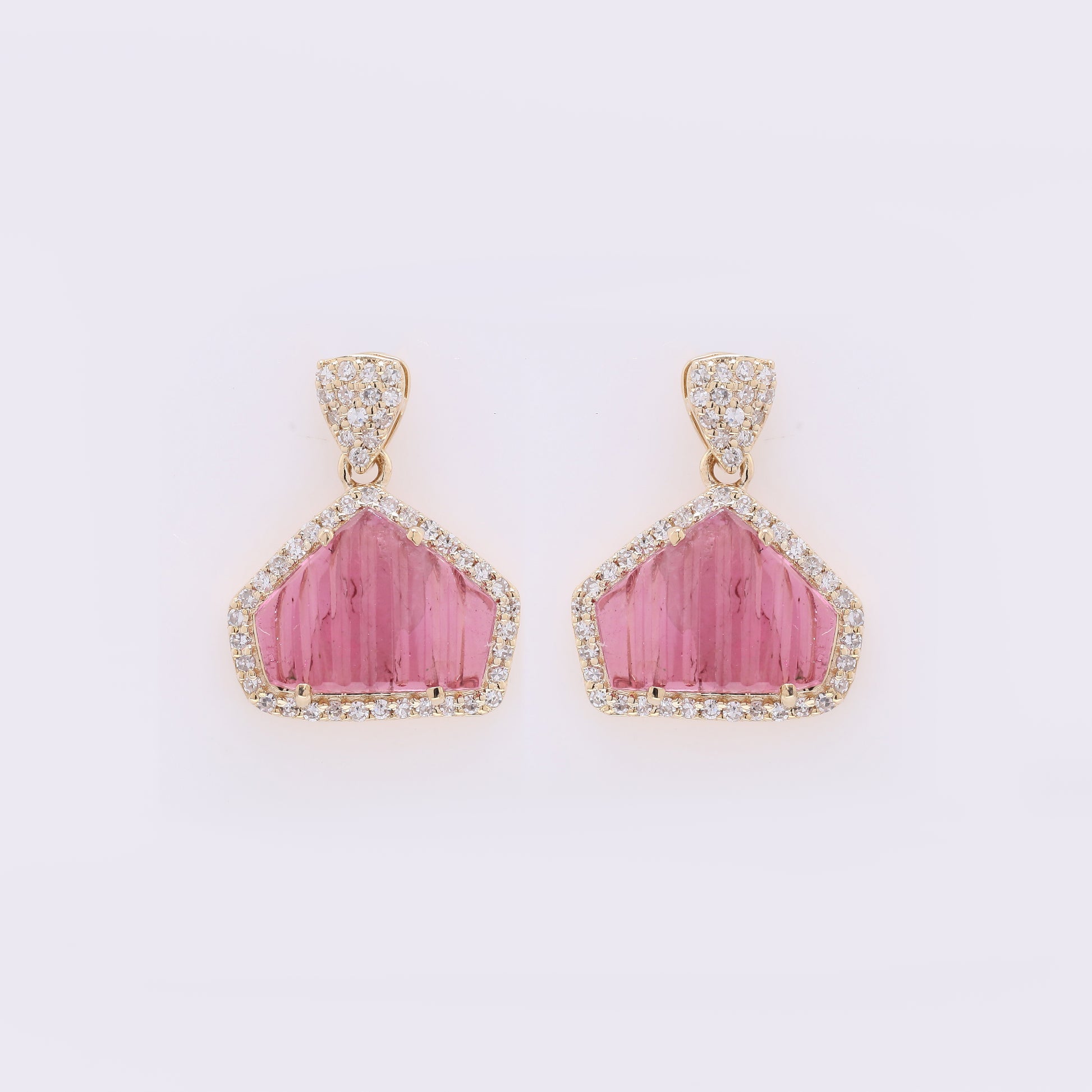 2.33 Ct Fancy Carving Natural Pink Tourmaline 14K Gold Earrings