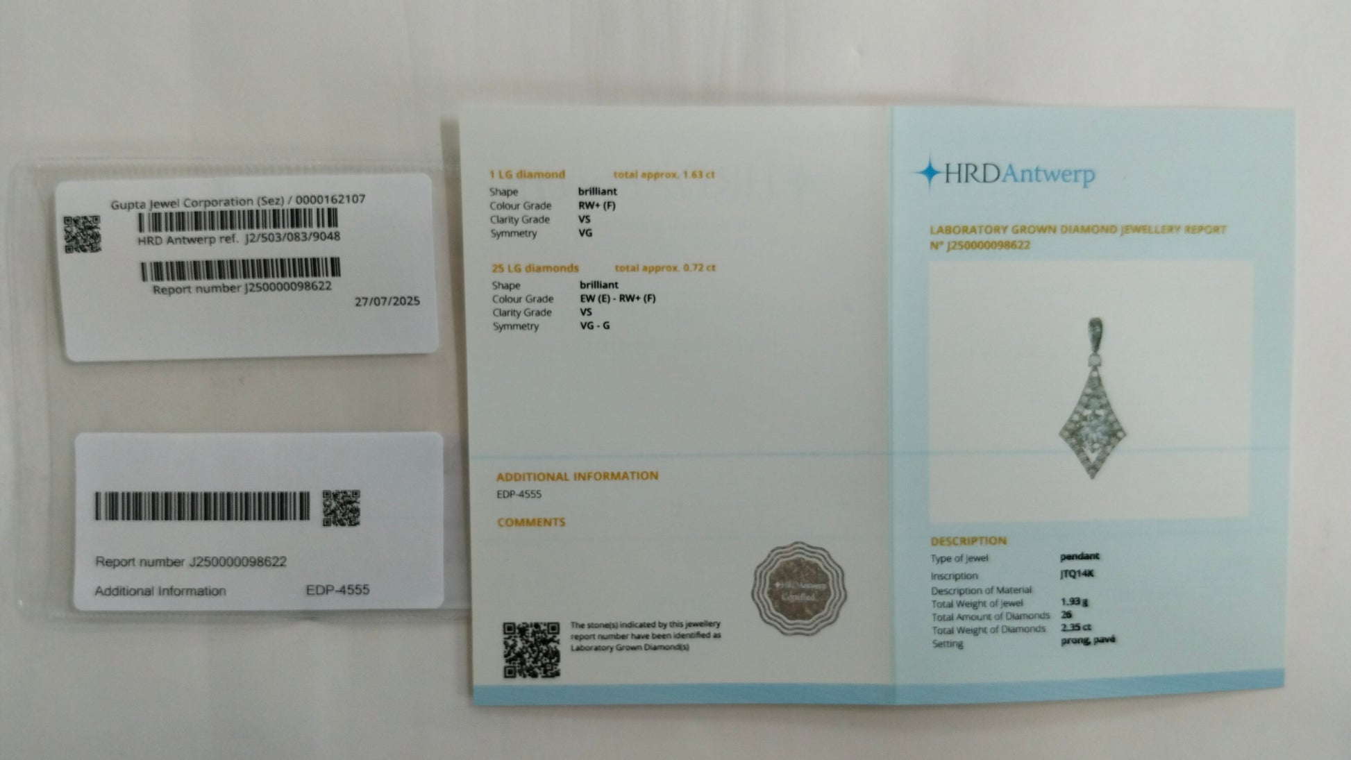 2.35 Carats Lab Grown Diamond 14K Gold Pendant