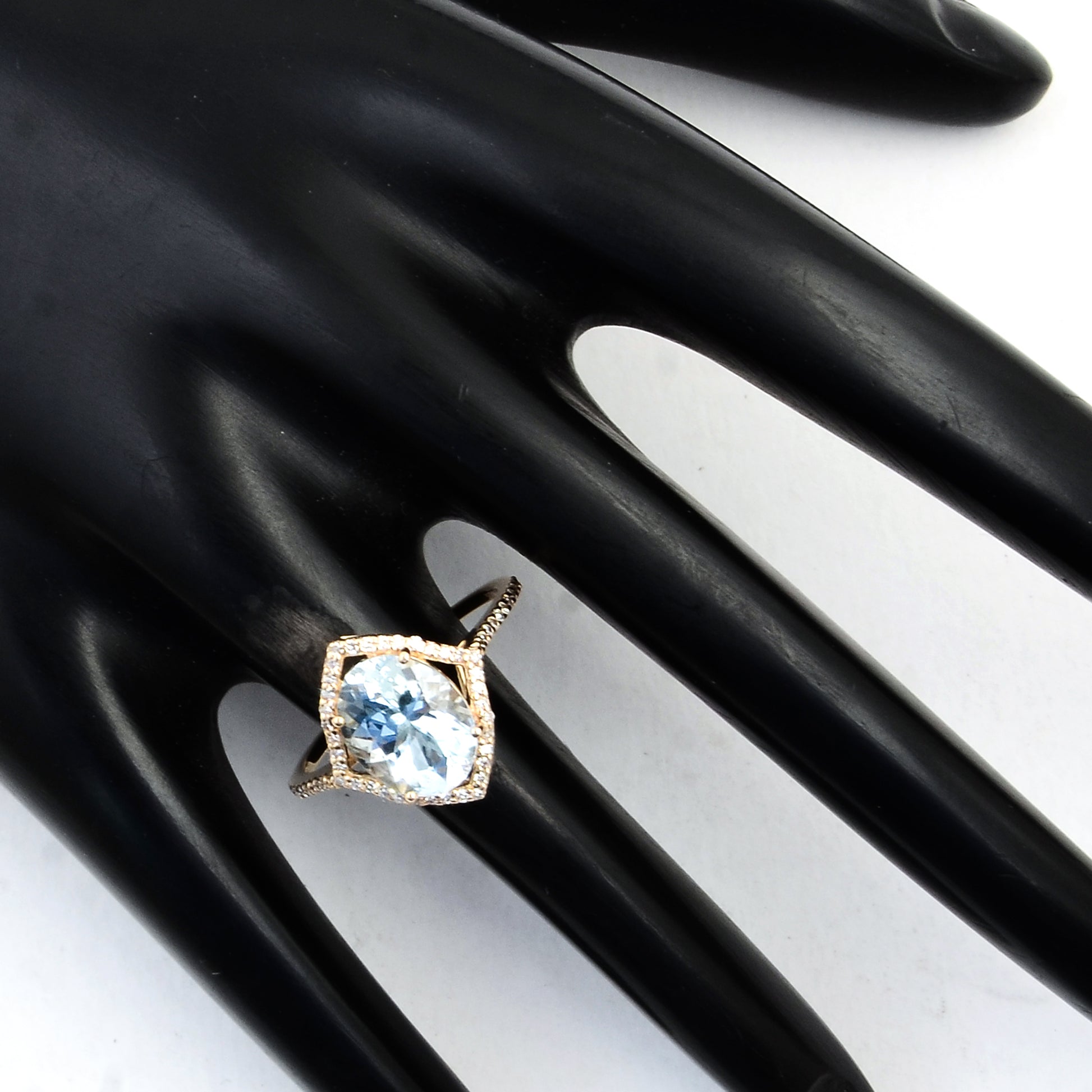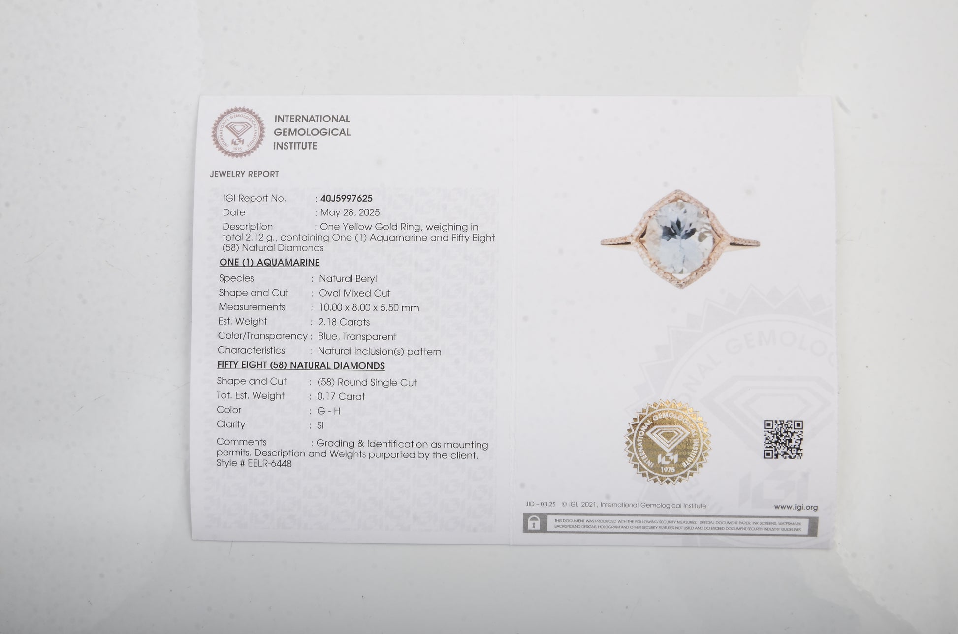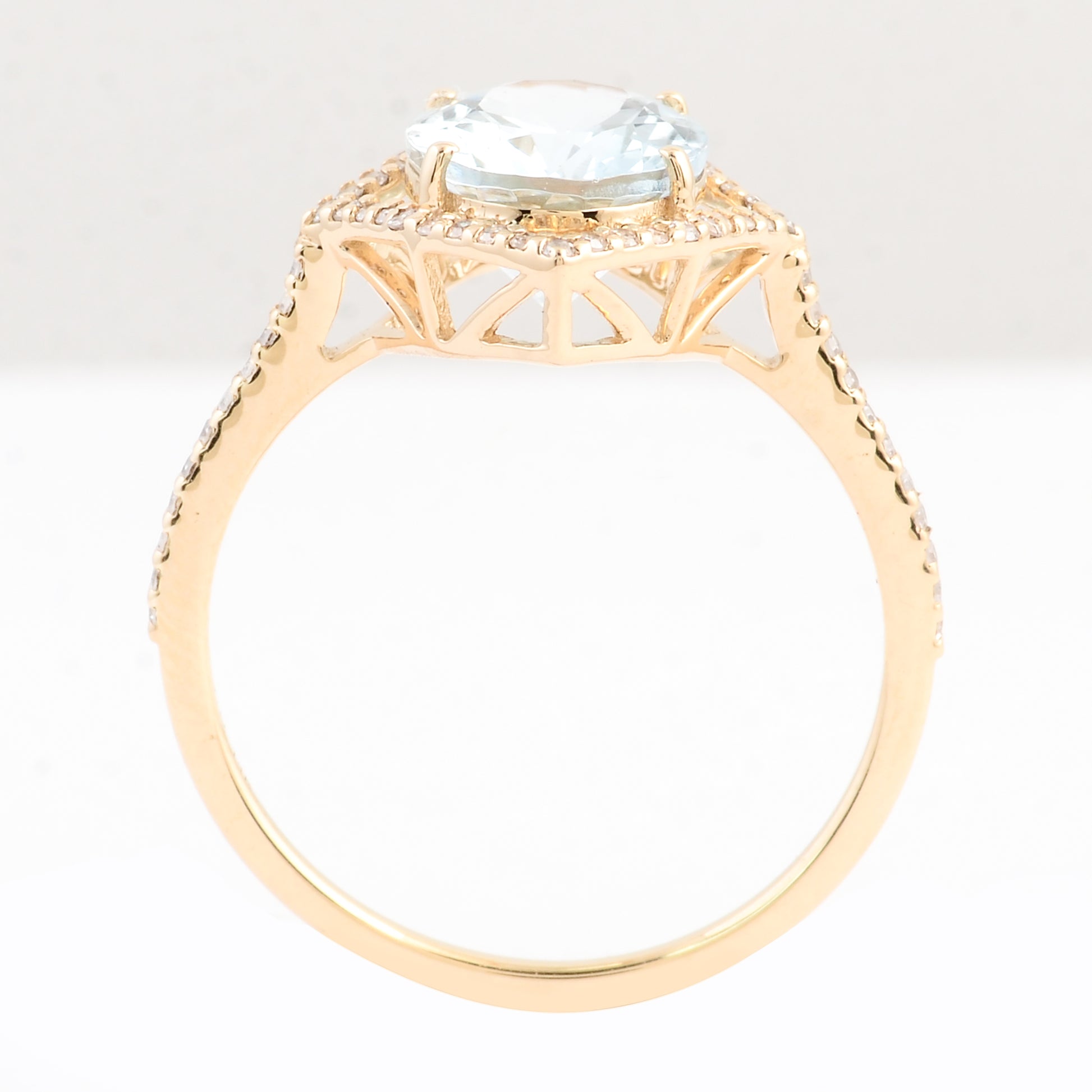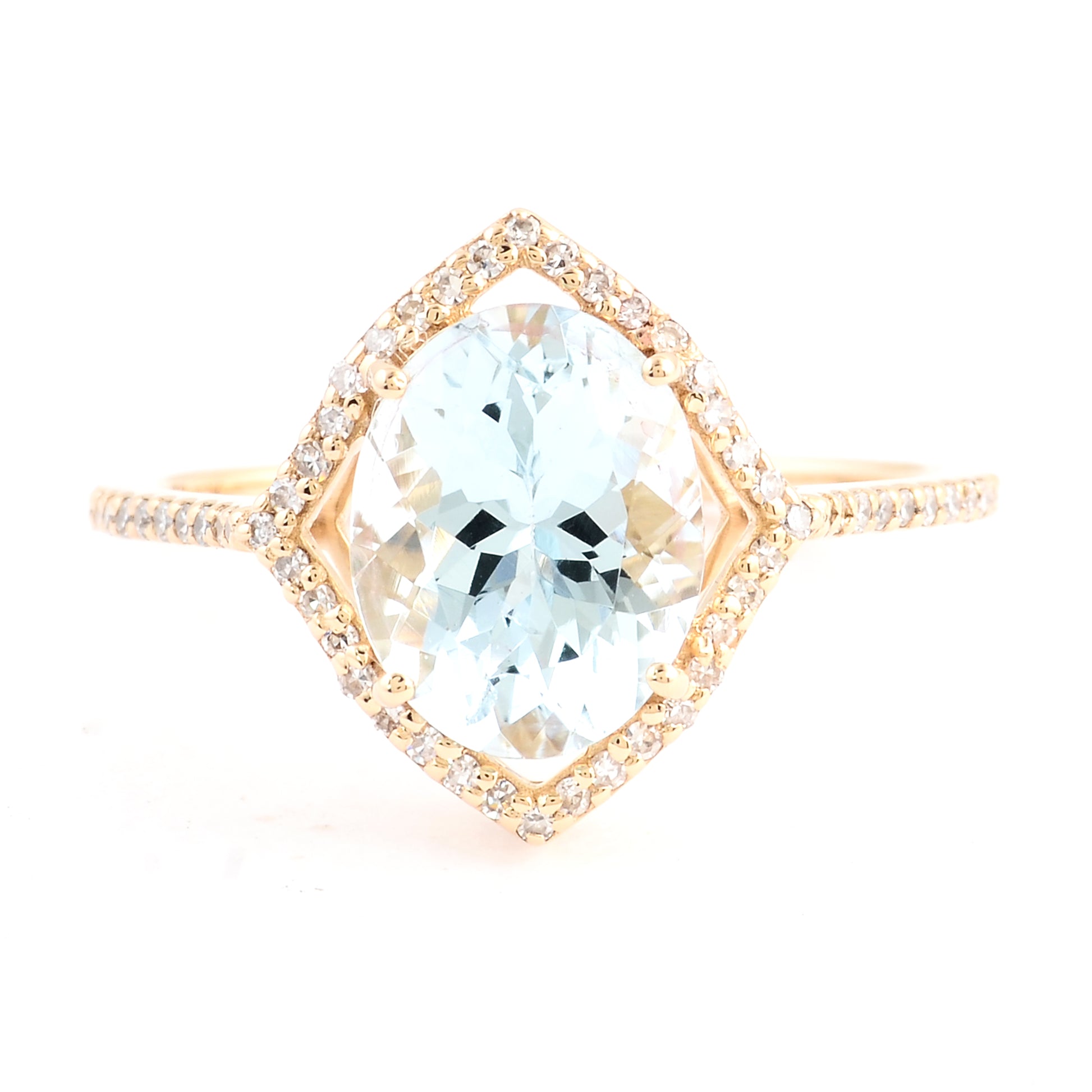 2.35 Ct Oval Mixed Cut Natural Beryl Aquamarine 14K Gold Ring