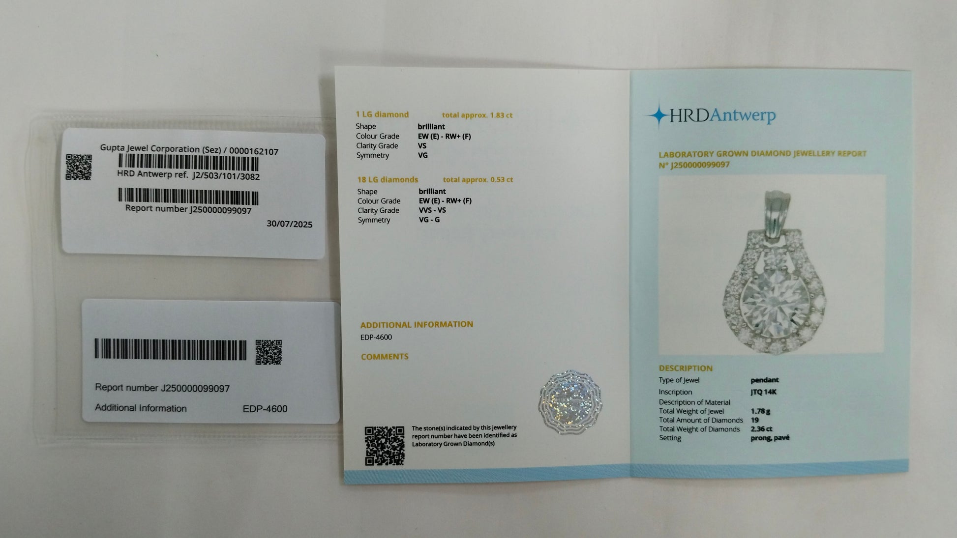 2.36 Carats Lab Grown Diamond 14K Gold Pendant