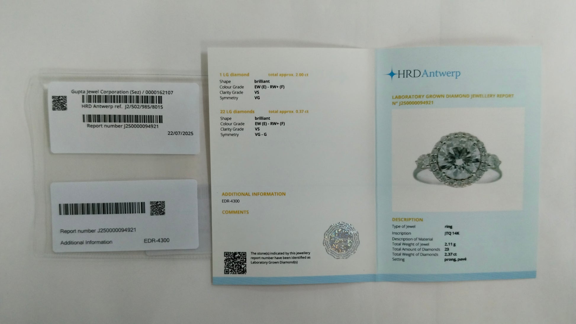 Total Lab Grown Diamond Weight: 2.37