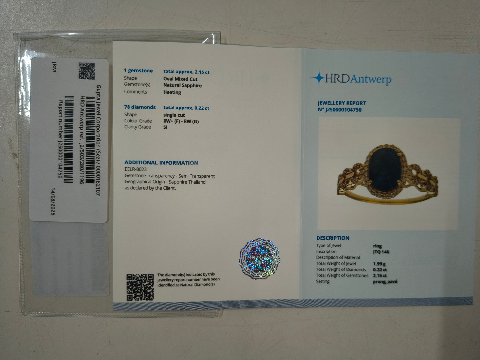 - Certificate Number J250000104750