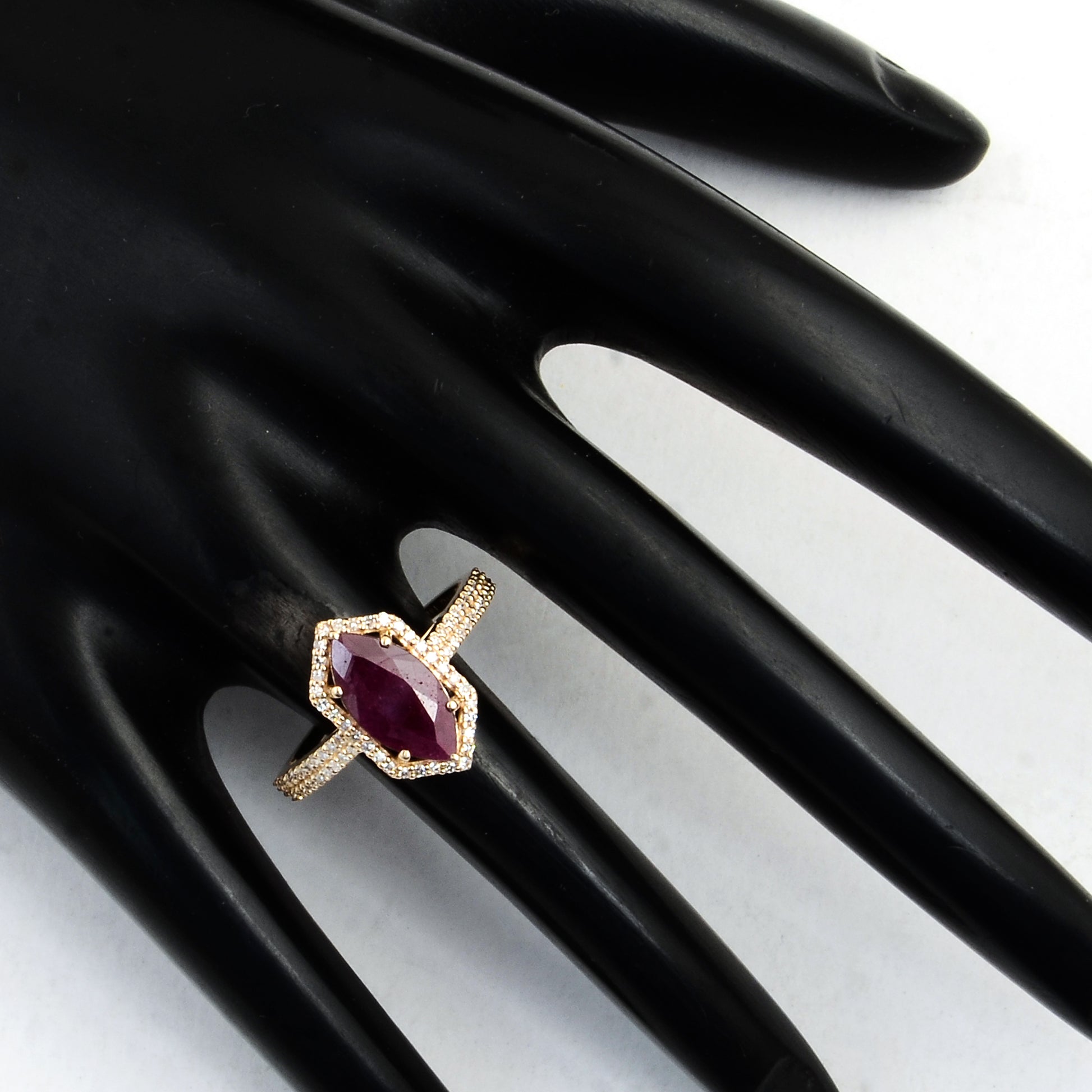 2.37 Ct Marquise Mixed Cut Natural Corundum Ruby 14K Gold Ring