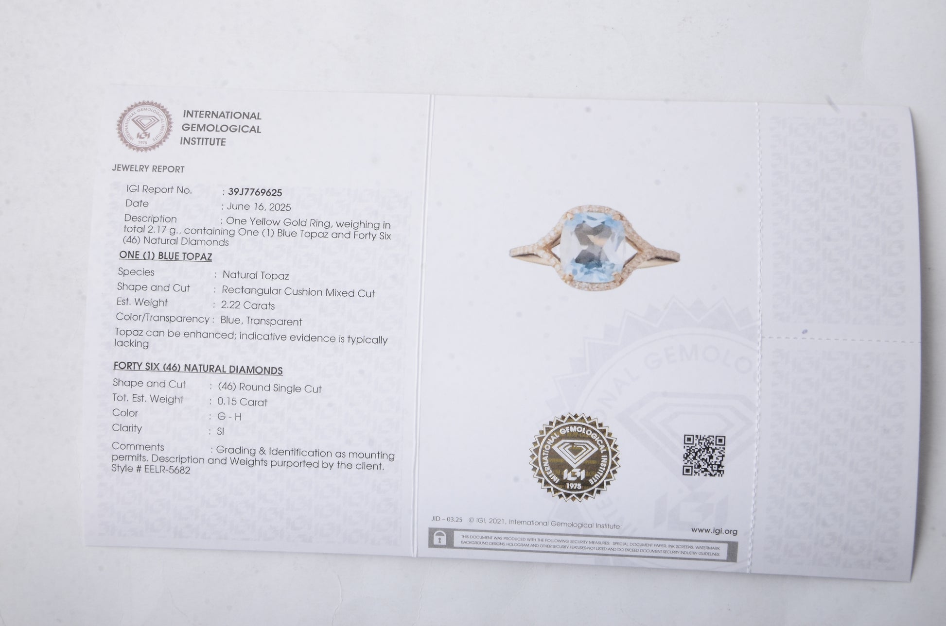 - Lab Name: International Gemological Institute (IGI)