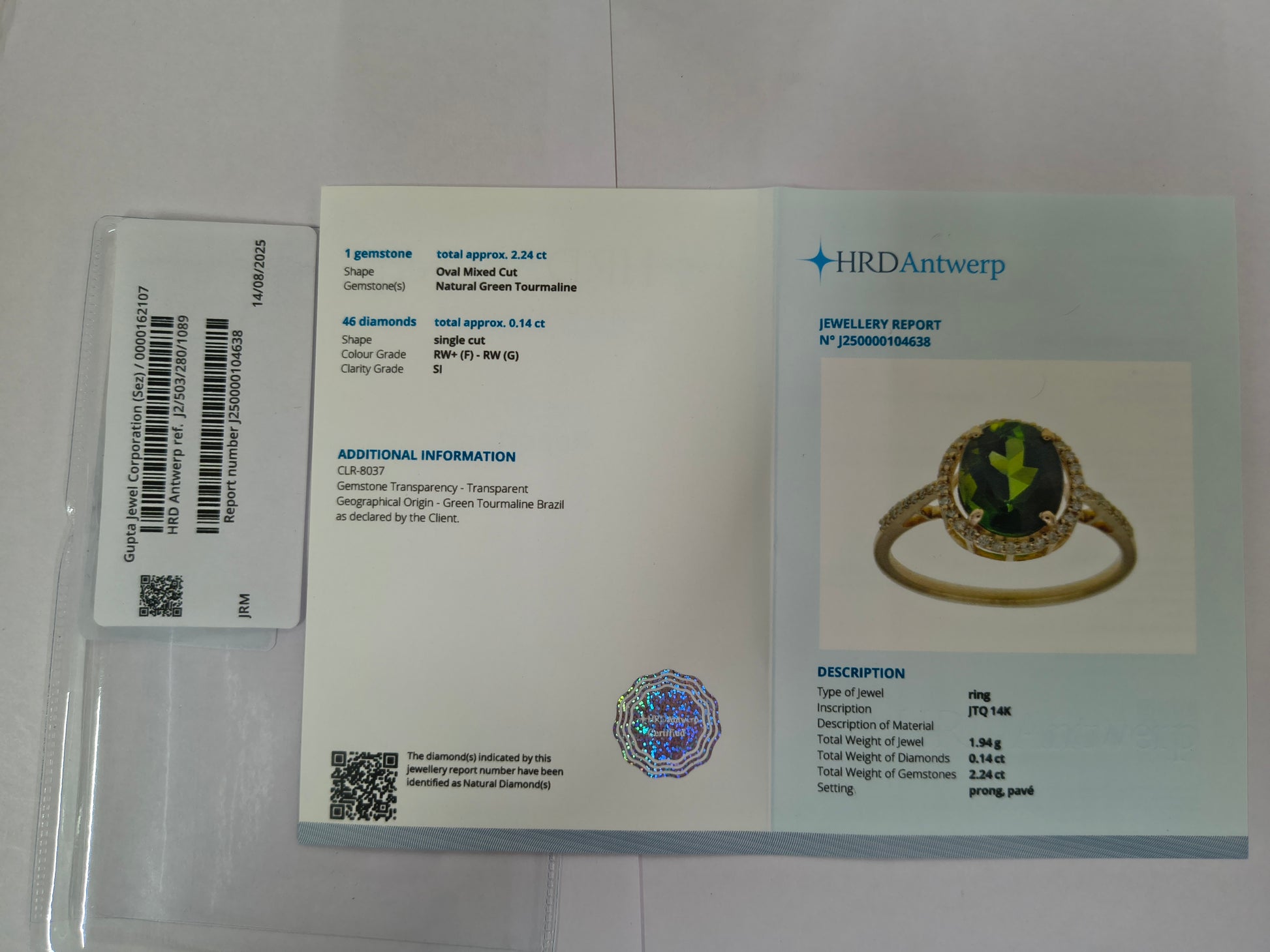 2.38 Ct Oval Mixed Cut Natural Tourmaline 14K Gold Ring