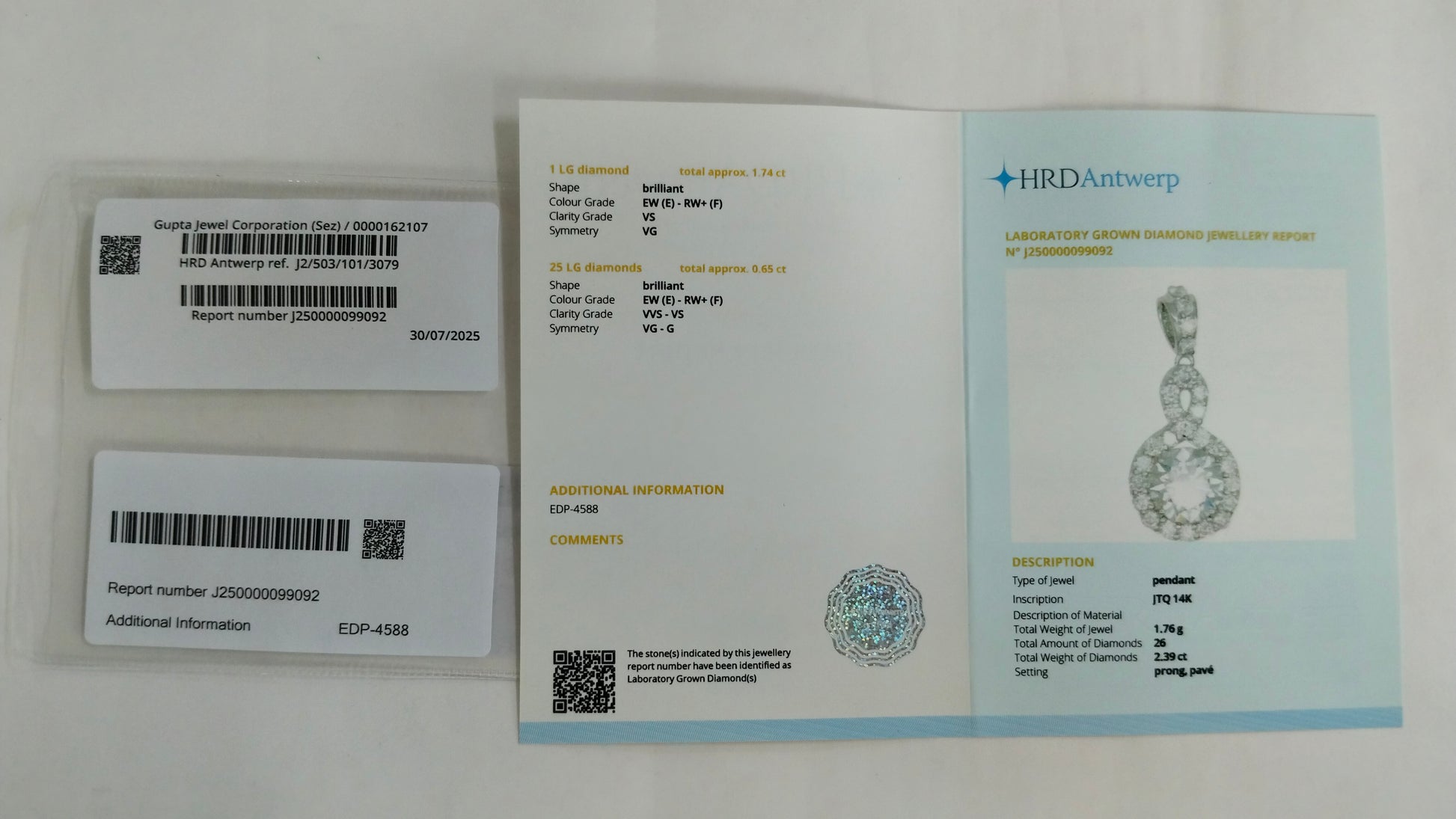 2.39 Carats Lab Grown Diamond 14K Gold Pendant