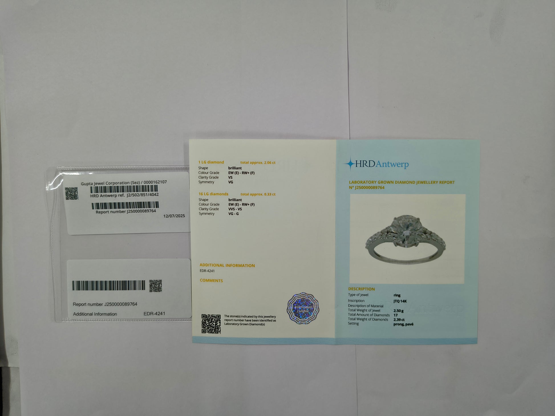 2.39 Carats Lab Grown Diamond 14K Gold Ring