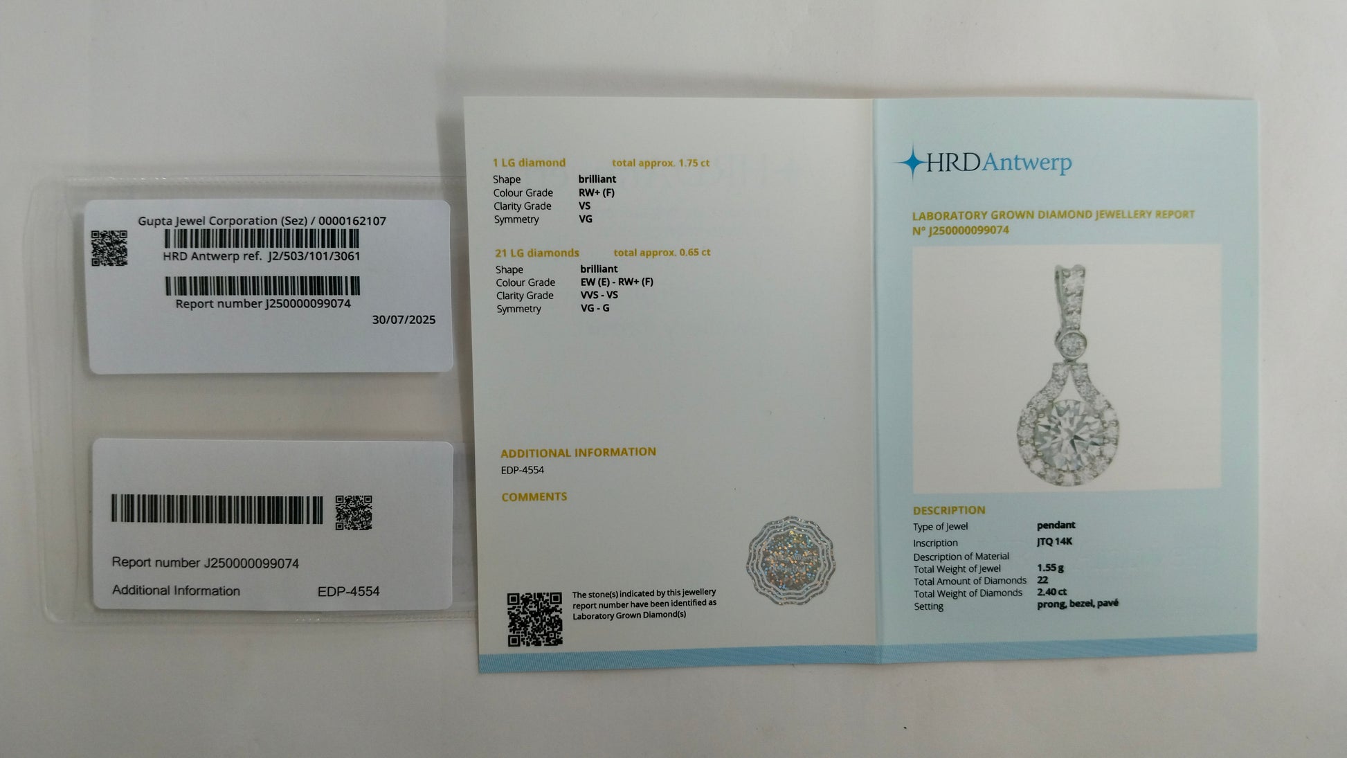 2.40 Carats Lab Grown Diamond 14K Gold Pendant