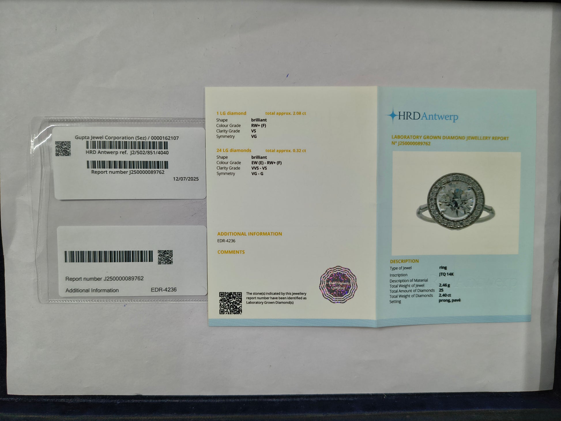 Total Lab Grown Diamond Weight: 2.40