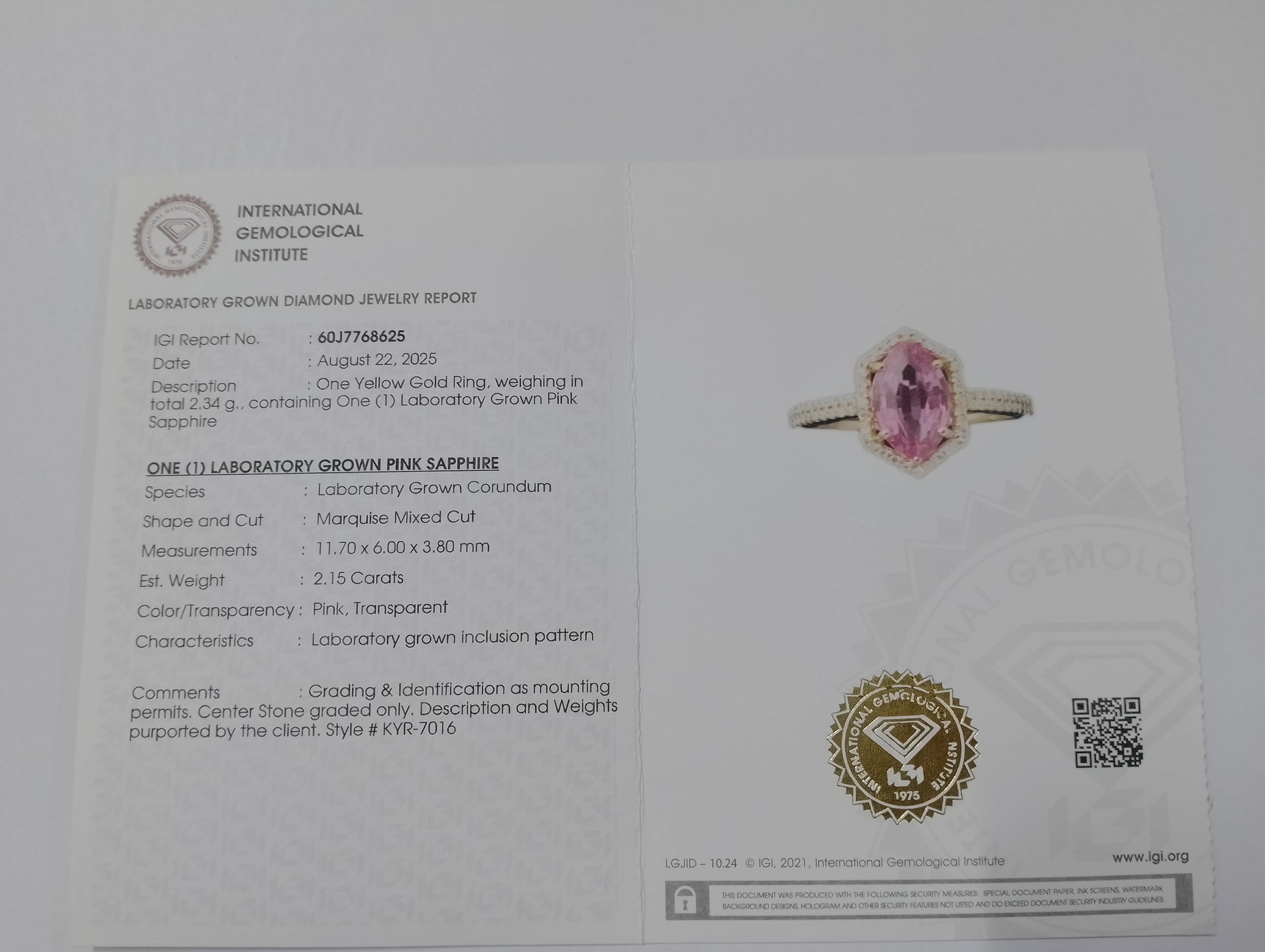 - Lab Name: International Gemological Institute (IGI)