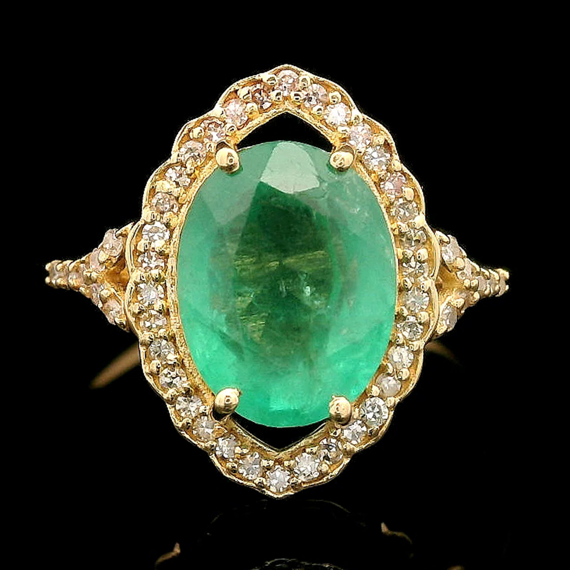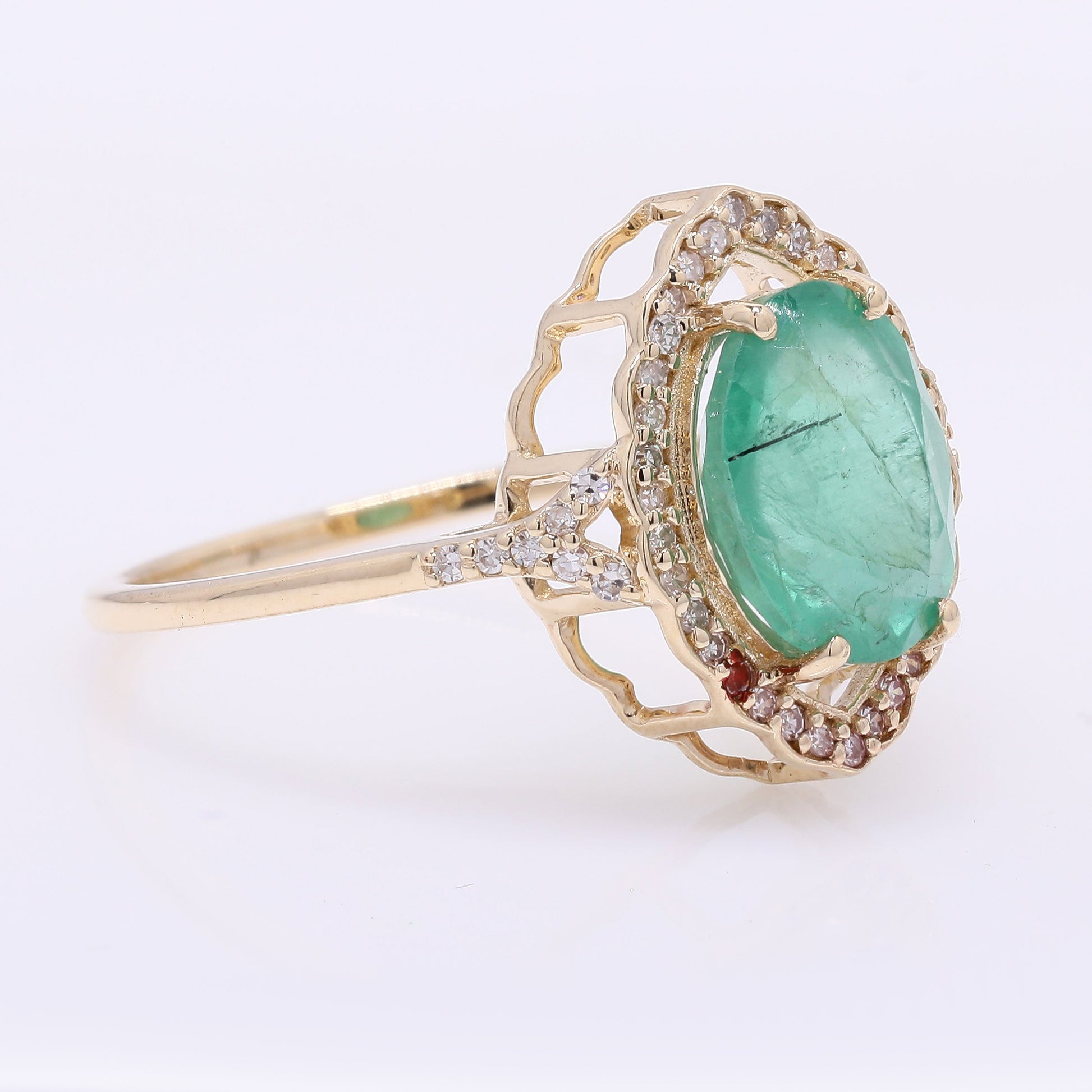 2.41 Ct Oval Mixed Cut Natural Emerald 14K Gold Ring