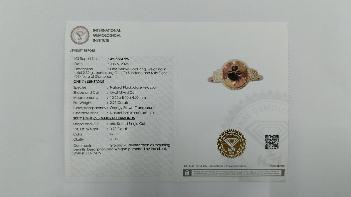 2.41 Ct Oval Mixed Cut Natural Plagioclase Feldspar Sunstone 14K Gold Ring