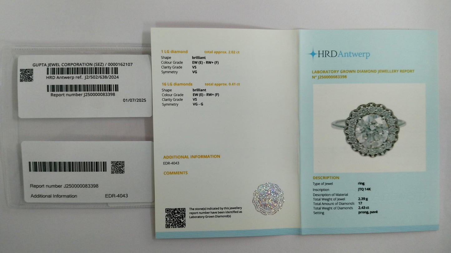 2.43 Carats Lab Grown Diamond 14K Gold Ring