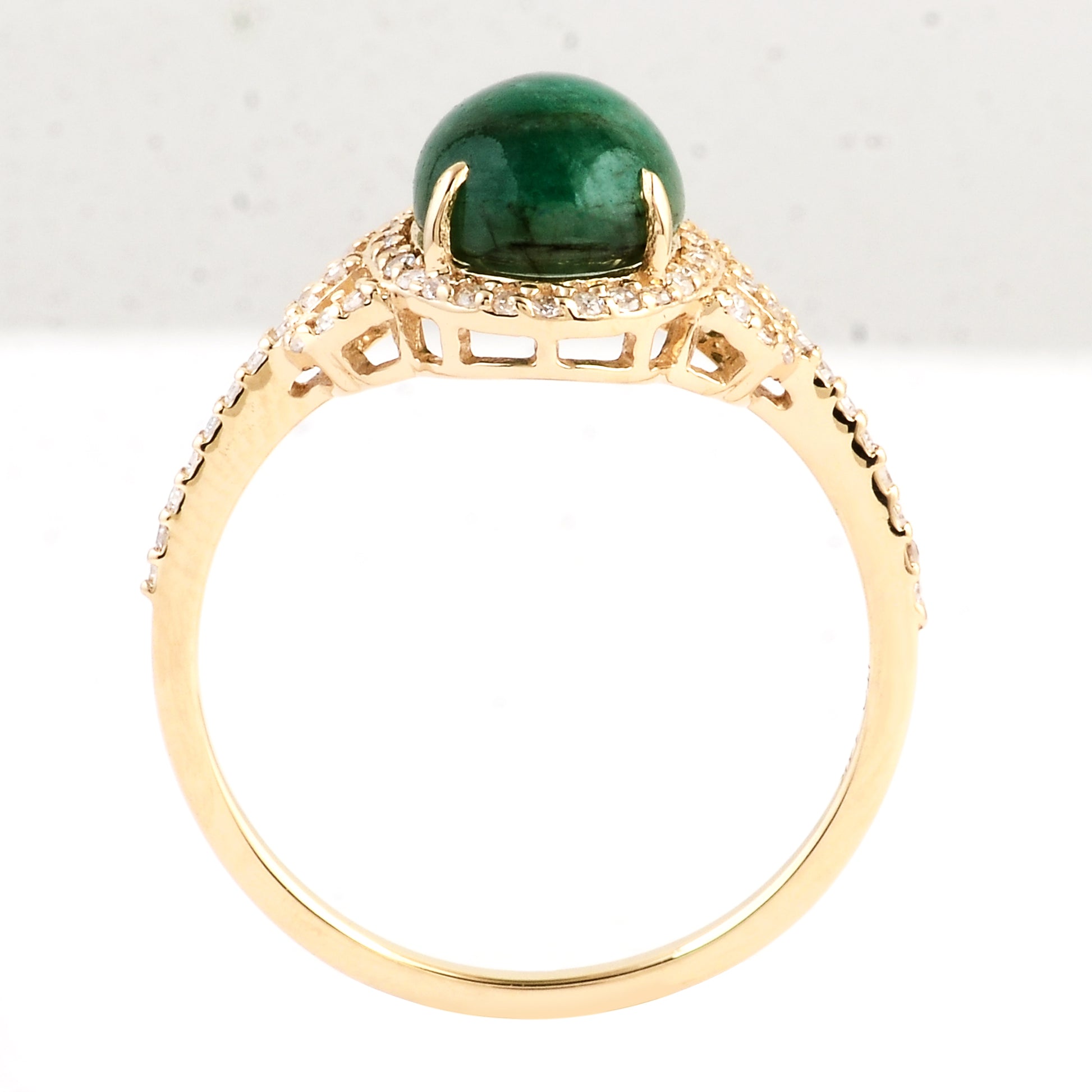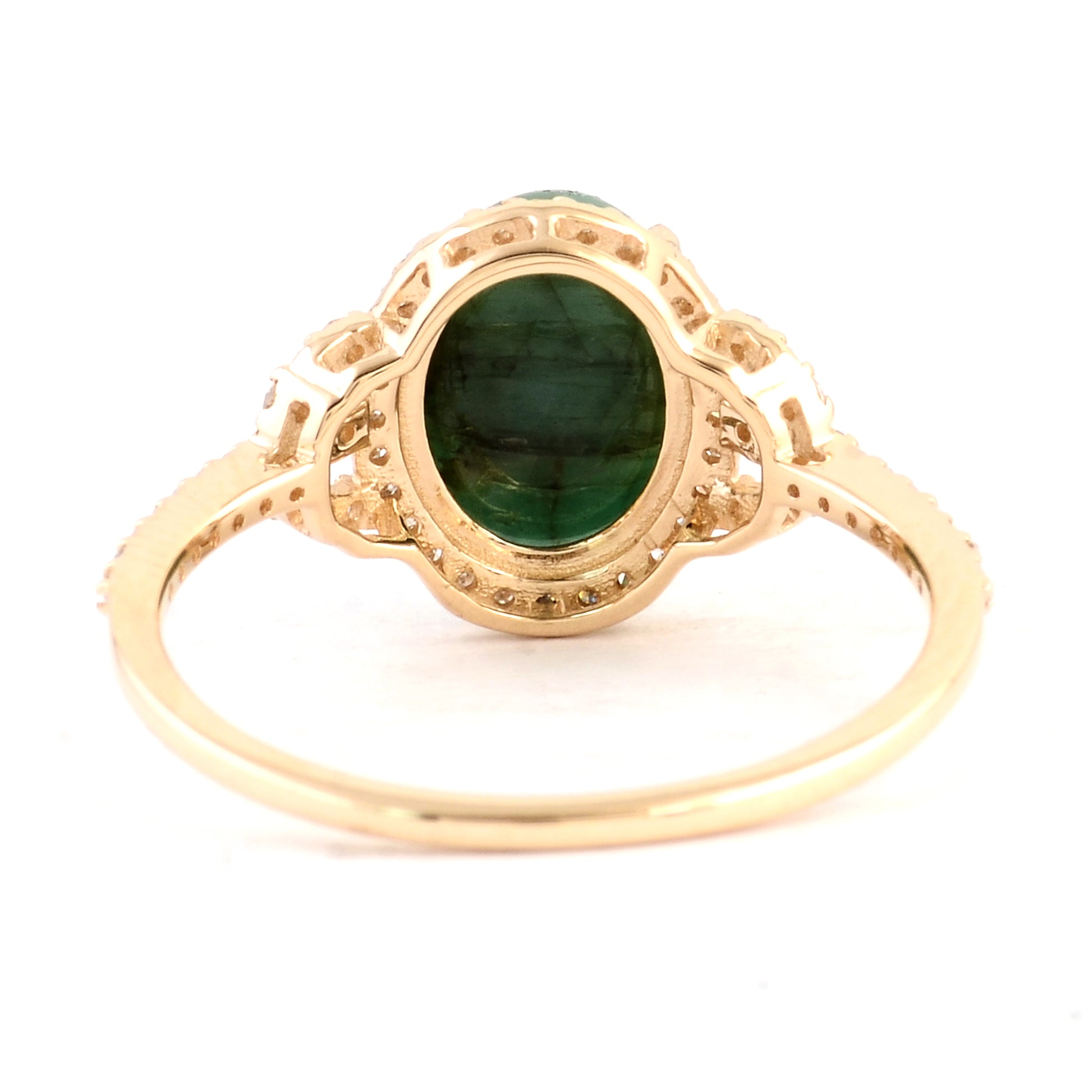 2.43 Ct Oval Cabochon Natural Beryl Emerald 14K Gold Ring