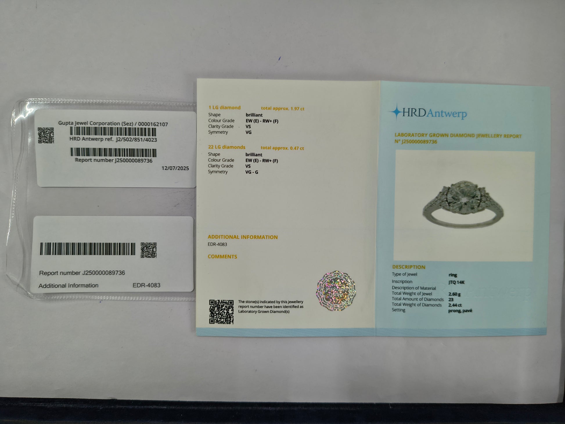 2.44 Carats Lab Grown Diamond 14K Gold Ring