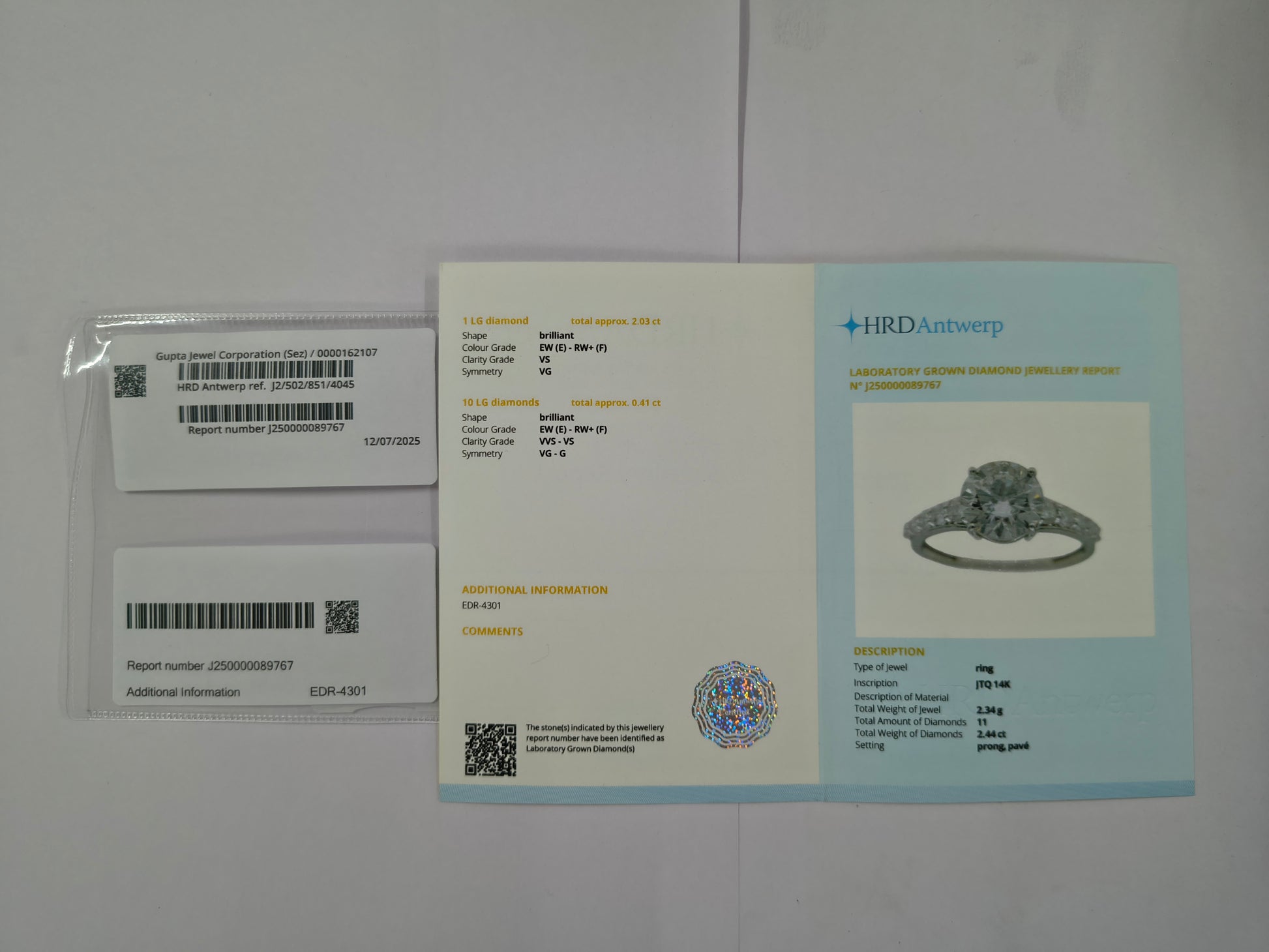 2.44-Carat Lab-Grown Diamond Round Brilliant Ring - HRD Certified