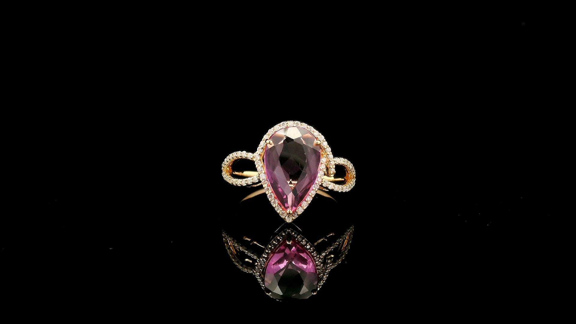 2.44 Ct Pear Lab Grown Pink Sapphire 14K Gold Ring