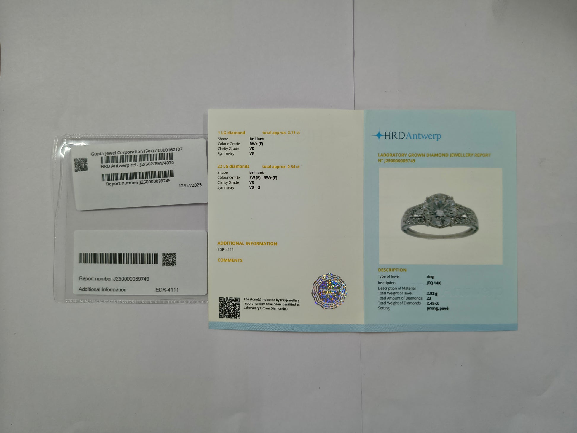 2.45-Carat Lab-Grown Diamond Round Brilliant Ring - HRD Certified