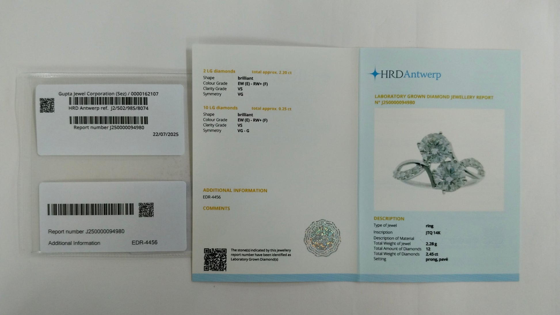 2.45-Carat Lab-Grown Diamond Round Brilliant Ring - HRD Certified
