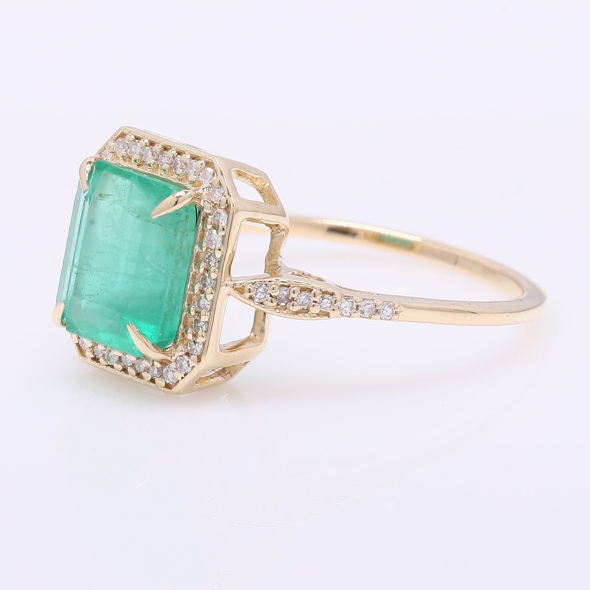 2.46 Ct Octagon Step Cut Natural Emerald 14K Gold Ring