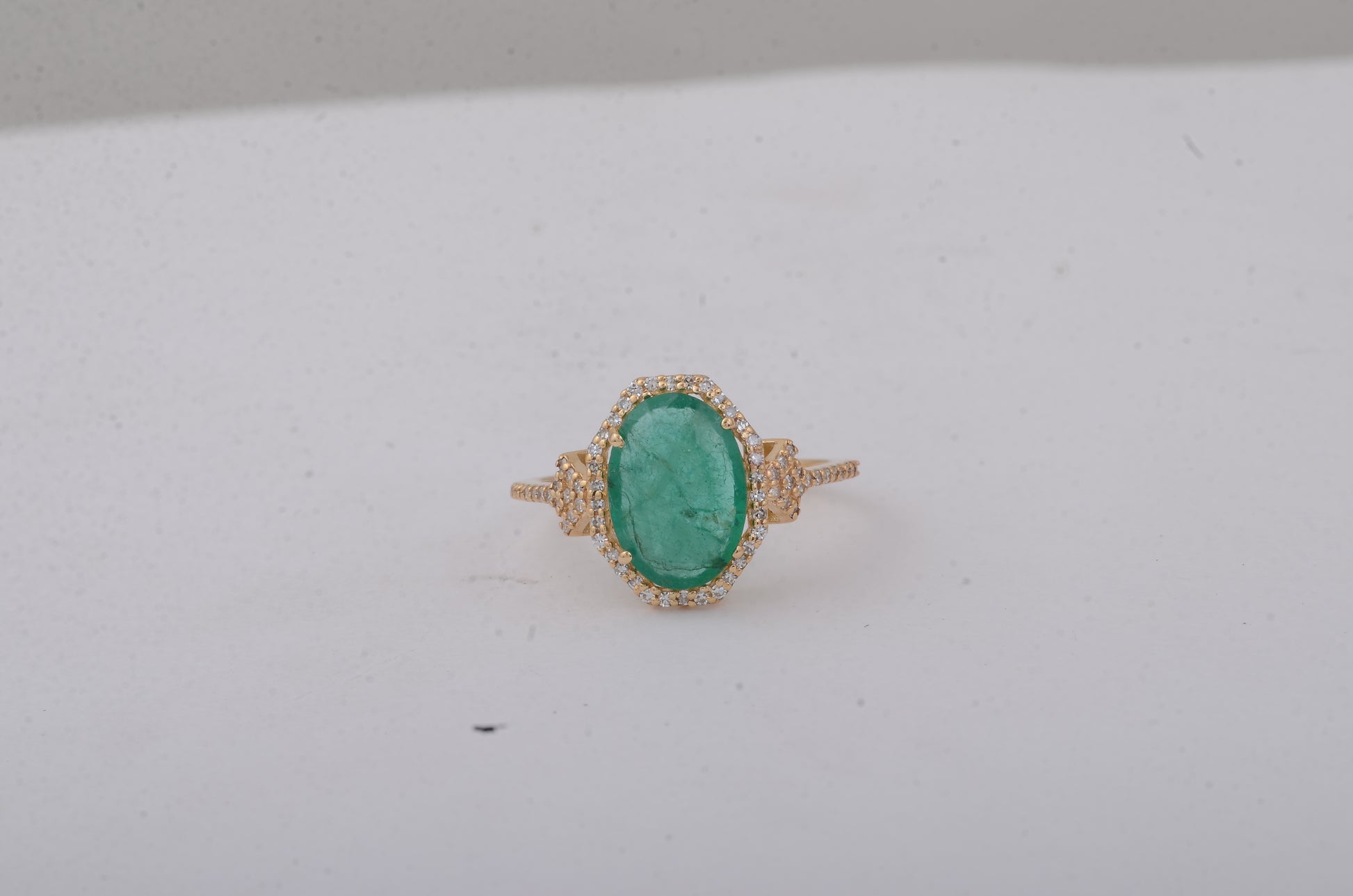 2.46 Ct Oval Natural Emerald 14K Gold Ring