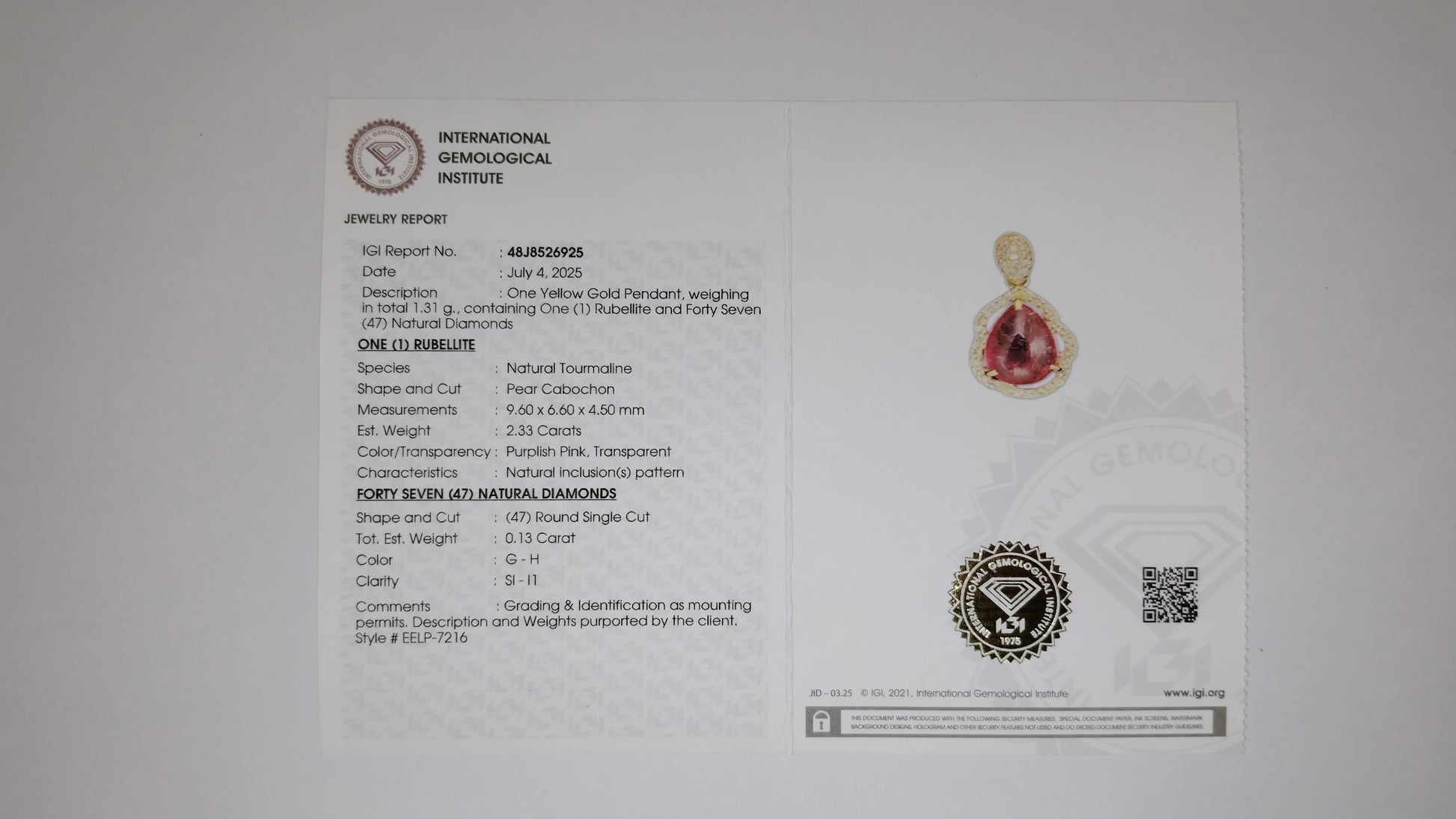 2.46 Total Carat Natural Tourmaline 14K Gold Pendant