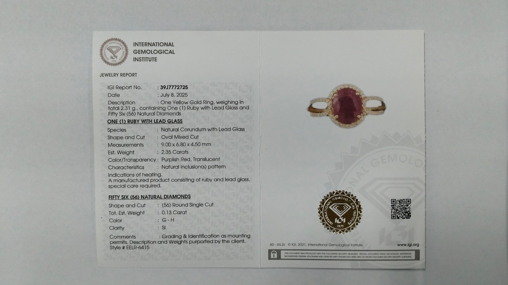 - Lab Name: International Gemological Institute (IGI)