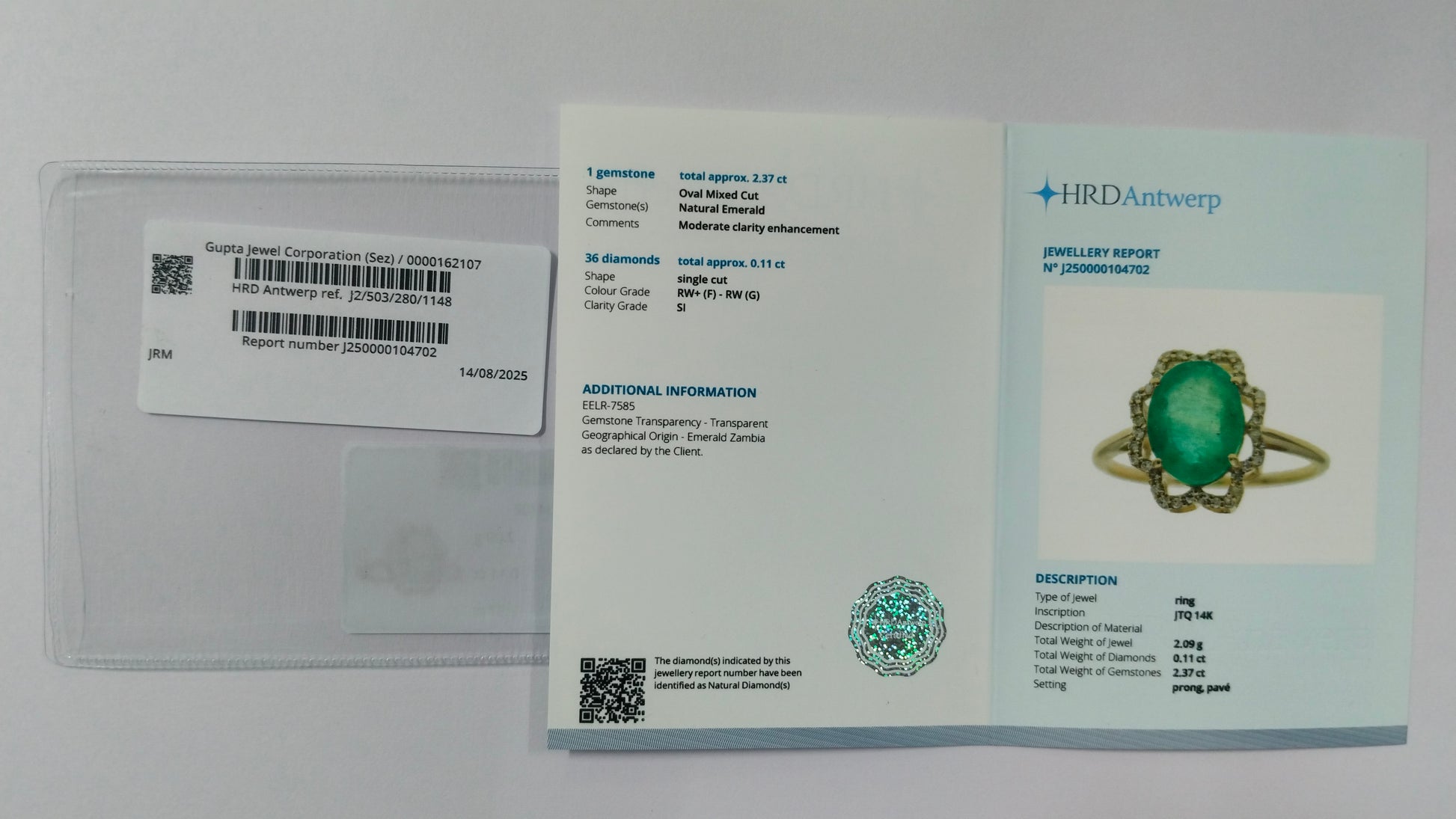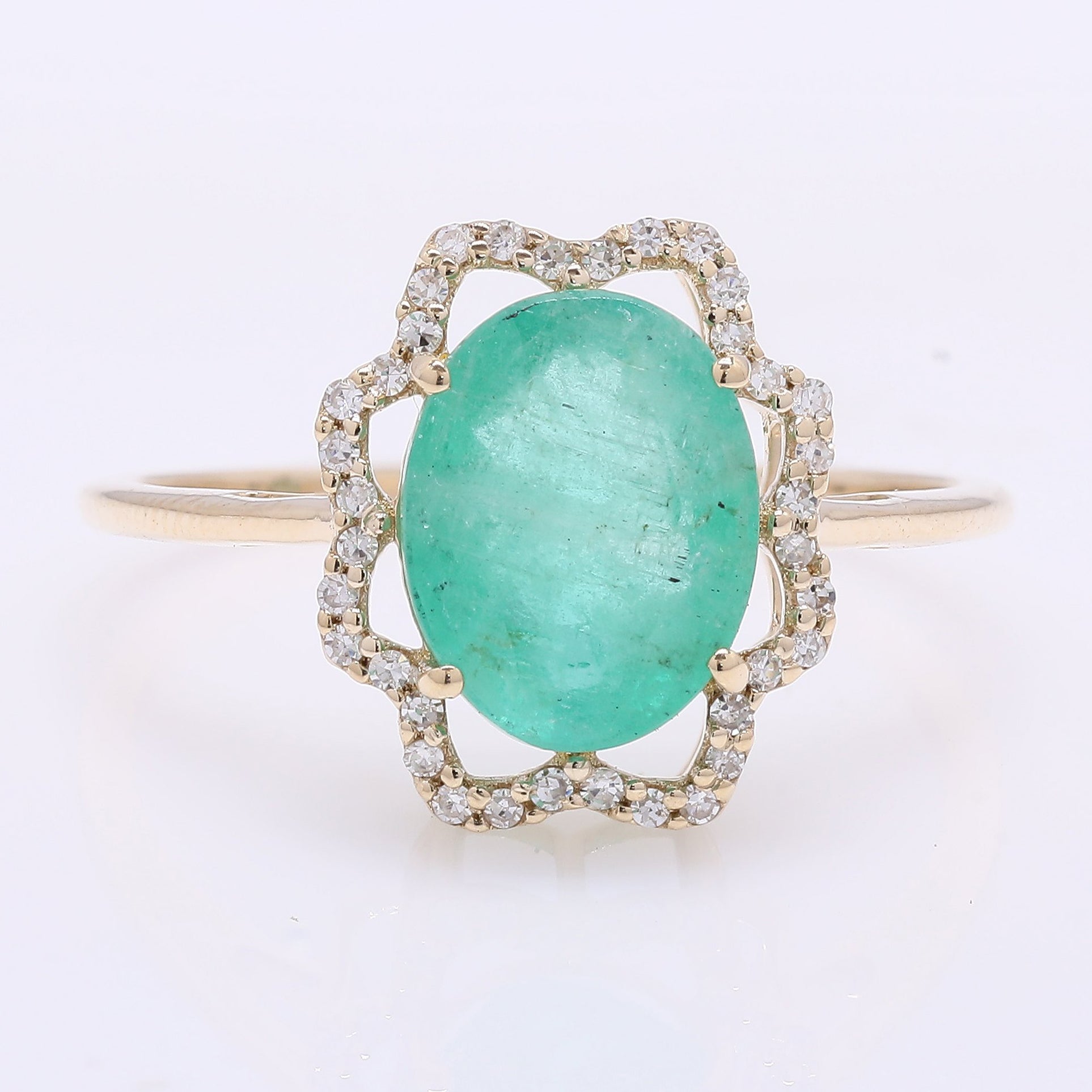 2.48 Ct Oval Mixed Cut Natural Emerald 14K Gold Ring