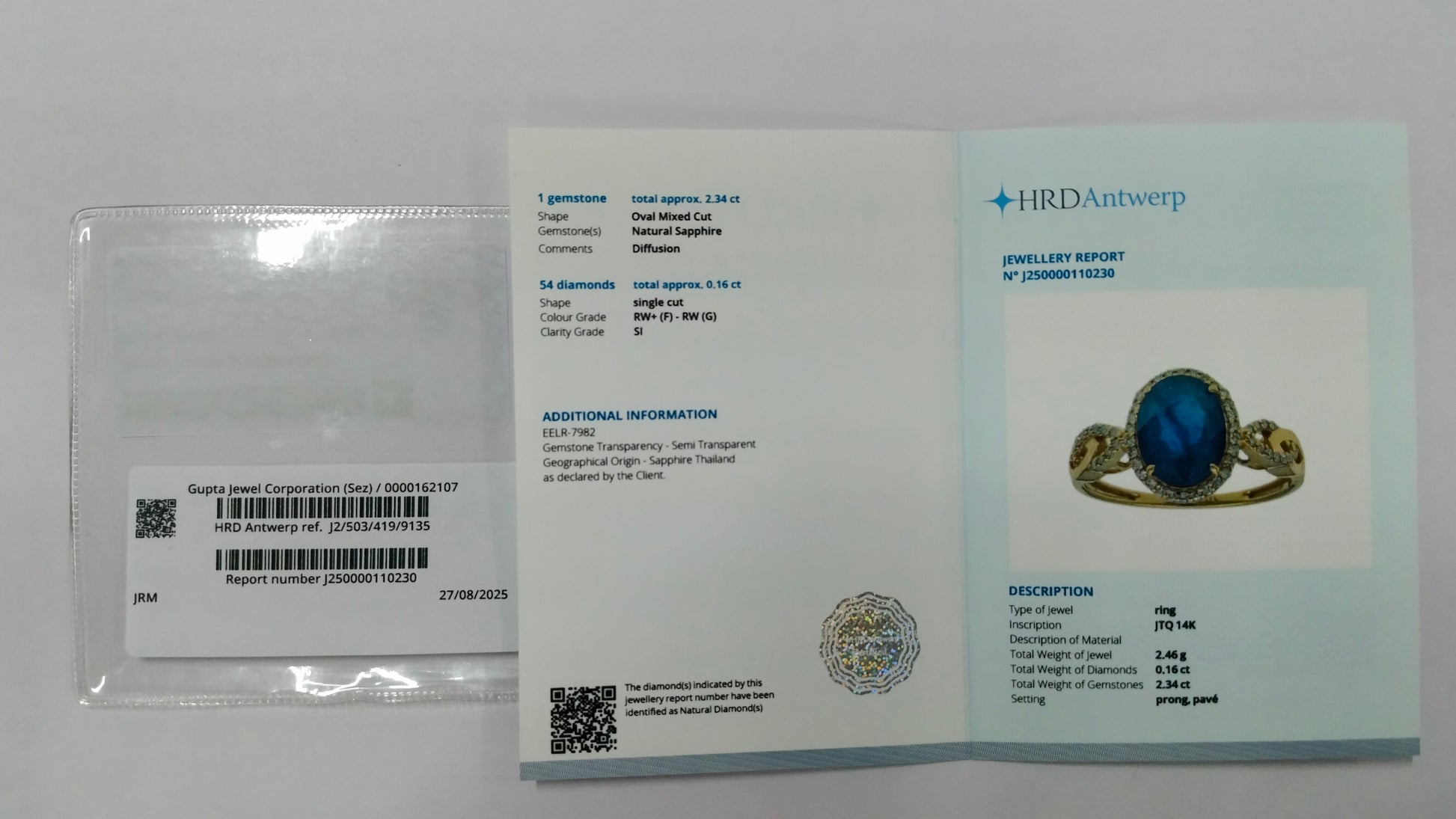 2.50 Ct Oval Mixed Cut Natural Sapphire 14K Gold Ring