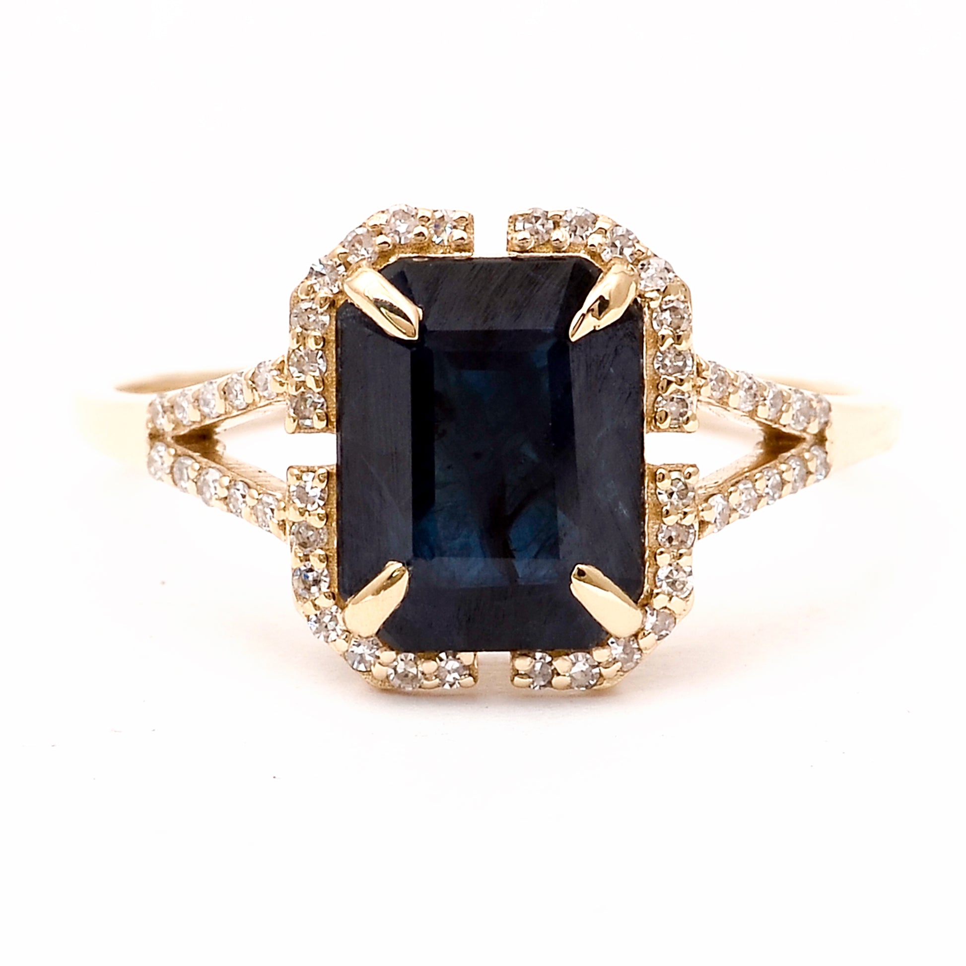 2.51 Ct Octagon Natural Sapphire 14K Gold Ring
