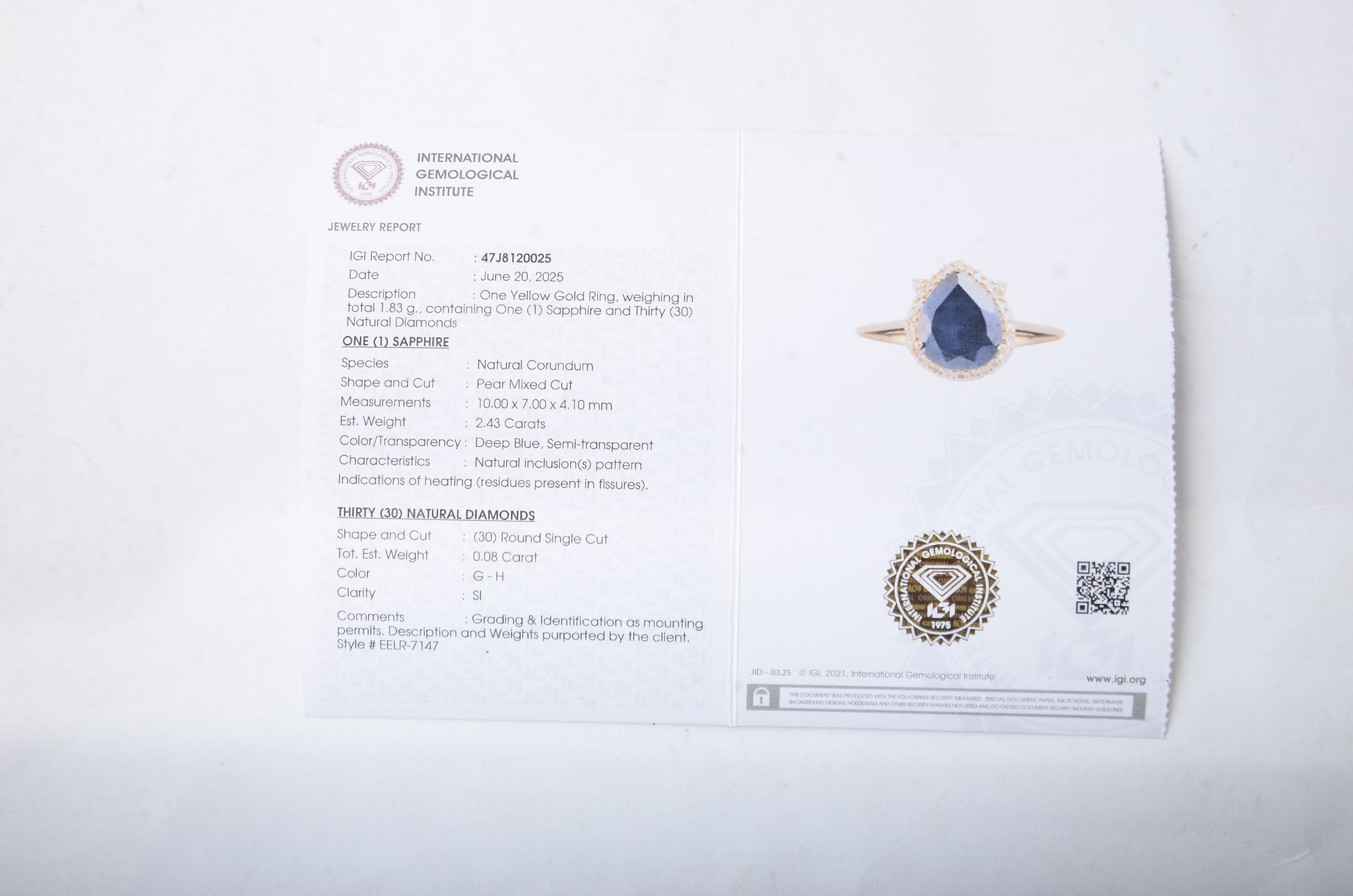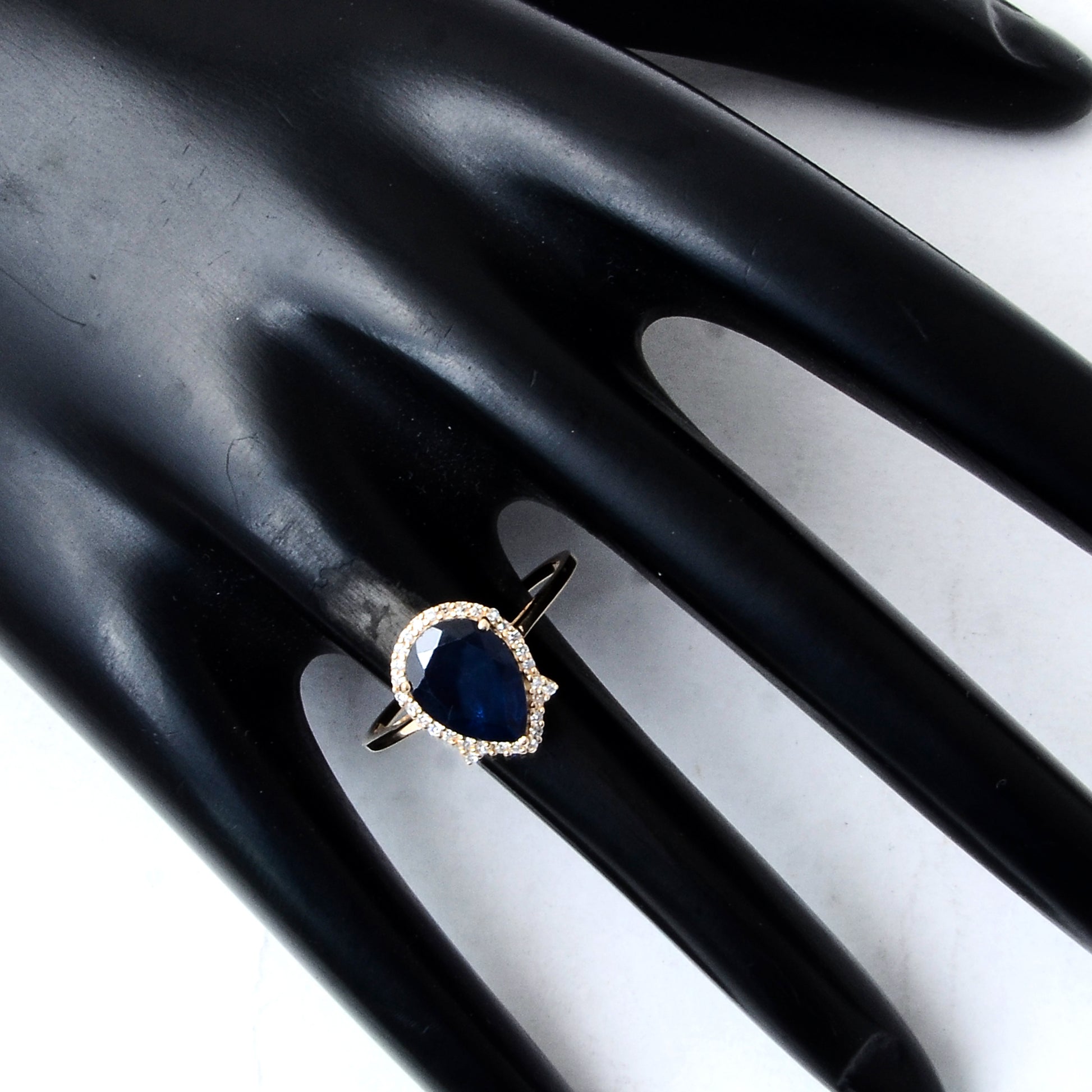2.51 Ct Pear Mixed Cut Natural Corundum Sapphire 14K Gold Ring