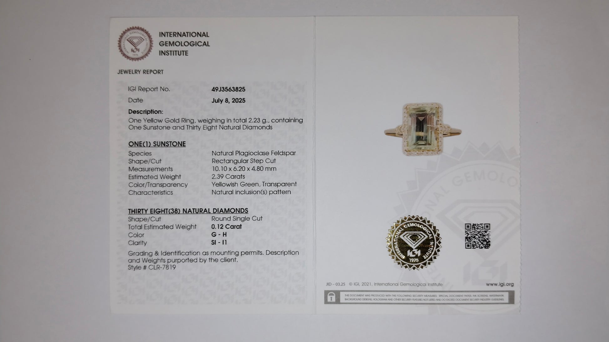 2.51 Ct Rectangular Step Cut Natural Plagioclase Feldspar Sunstone 14K Gold Ring