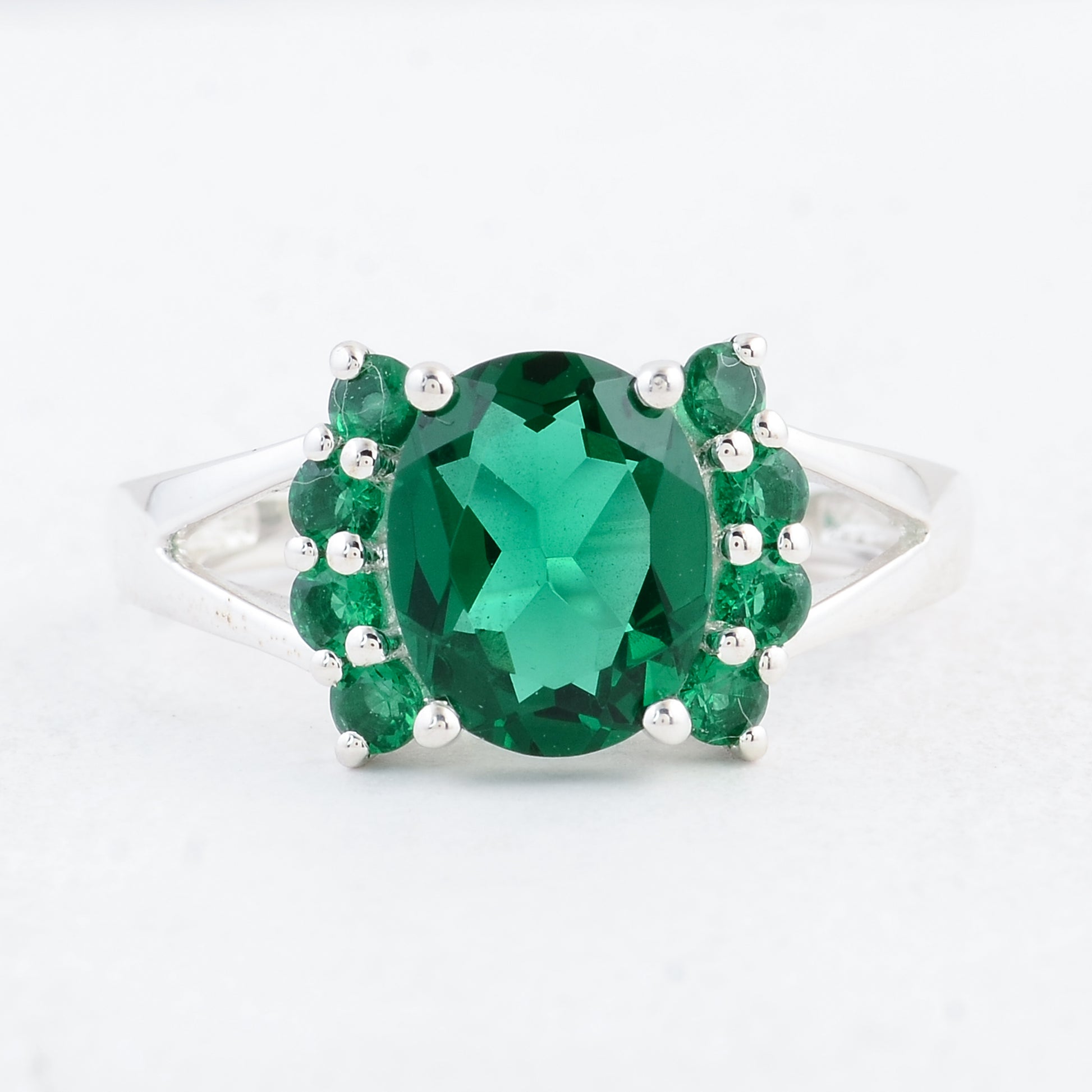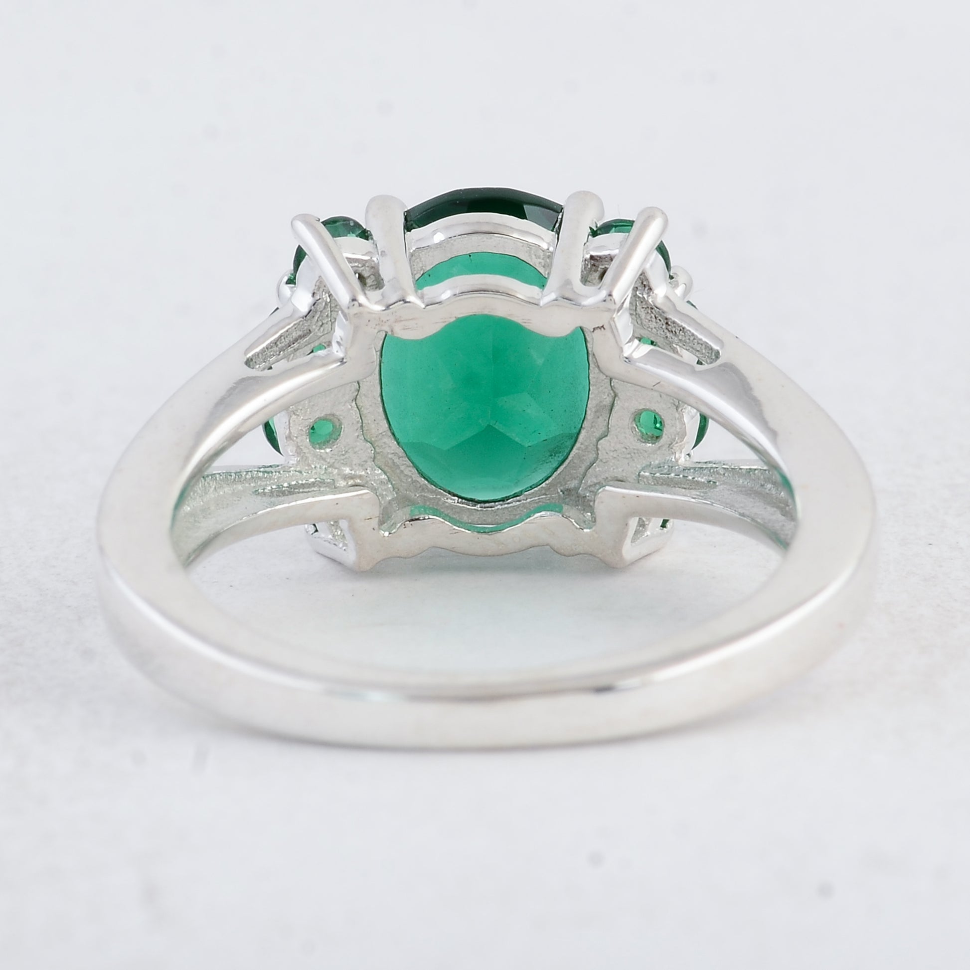 2.52 Ct Oval Created Glass Emerald 925 Sterling Silver Ring