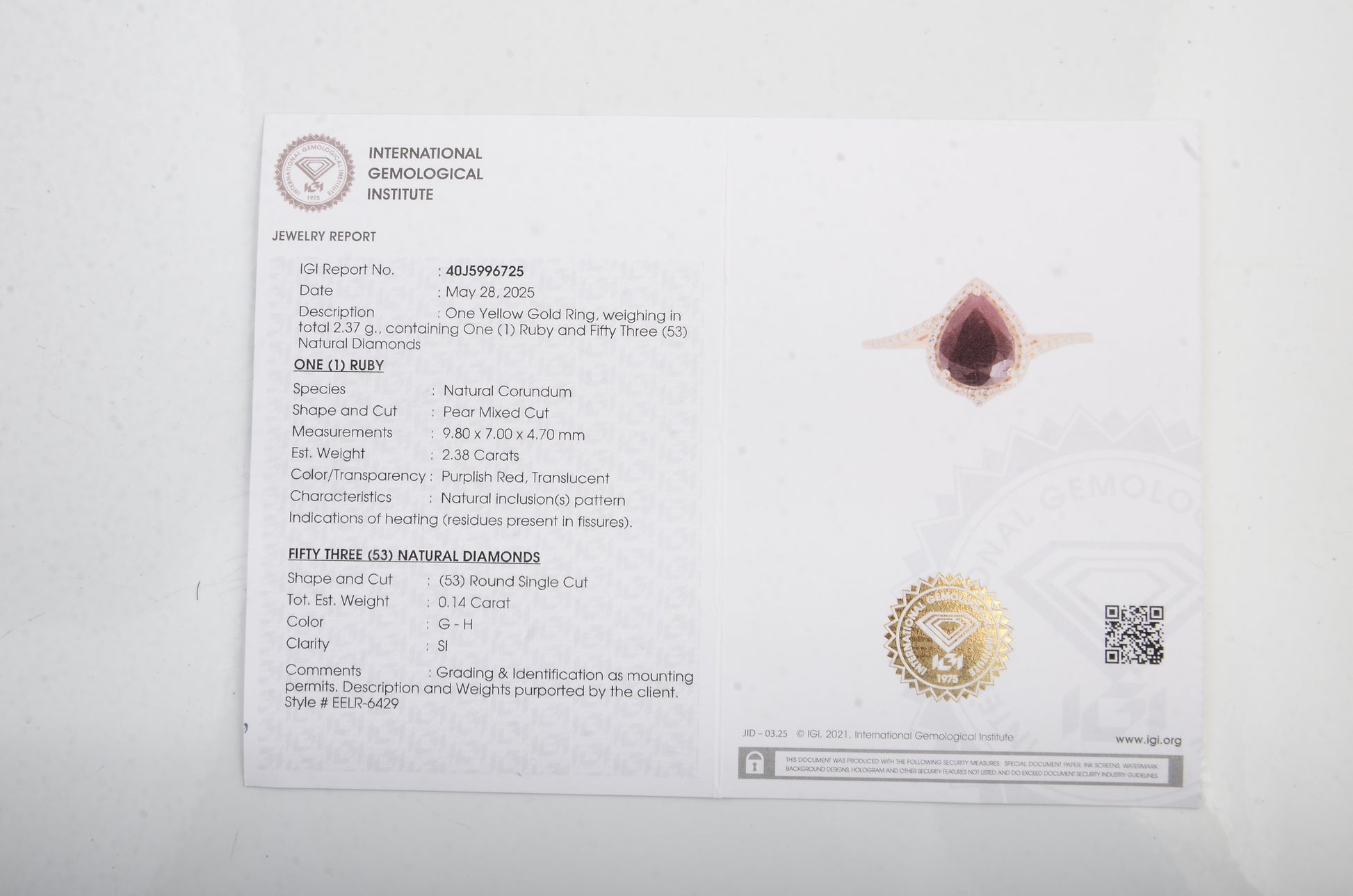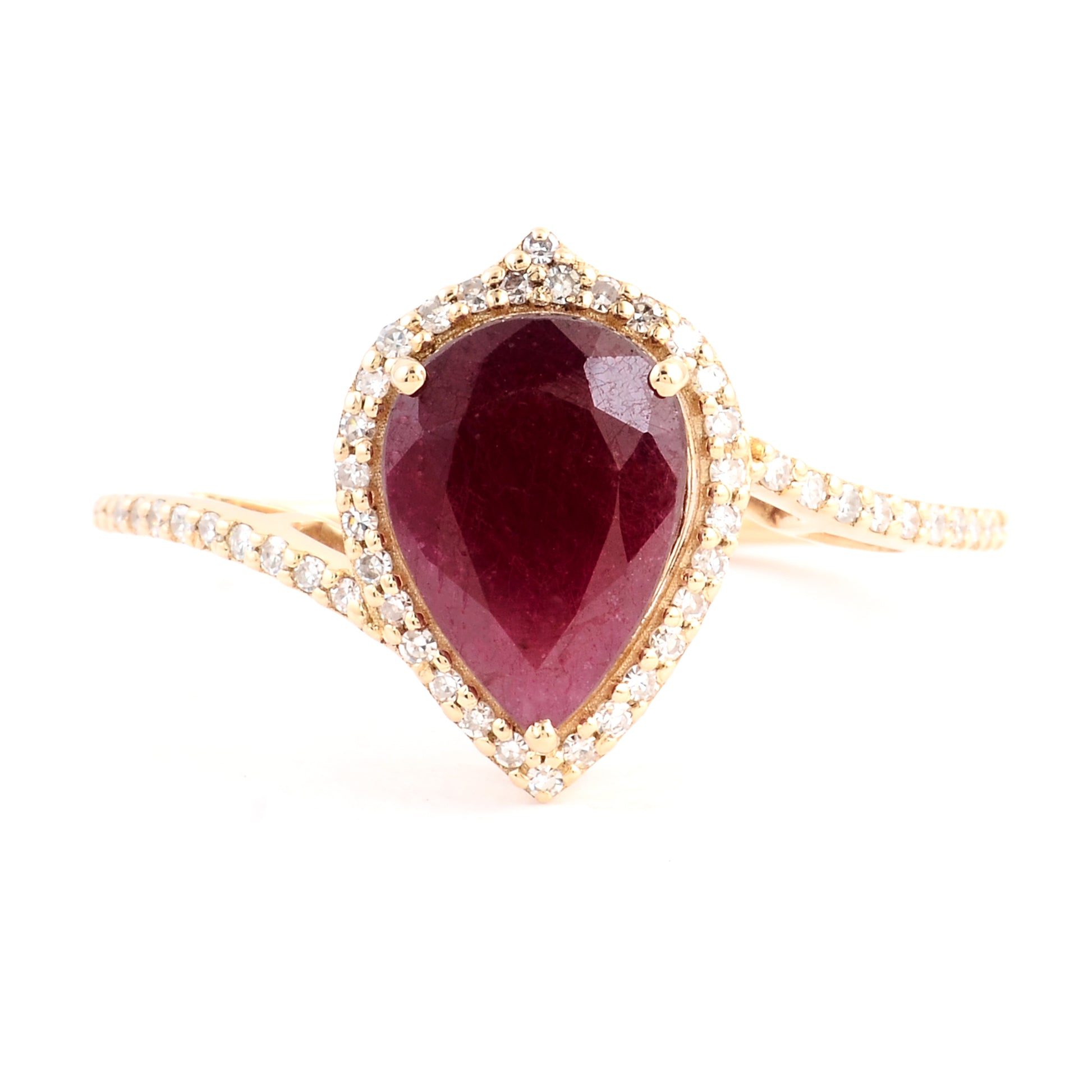 2.52 Ct Pear Mixed Cut Natural Corundum Ruby 14K Gold Ring