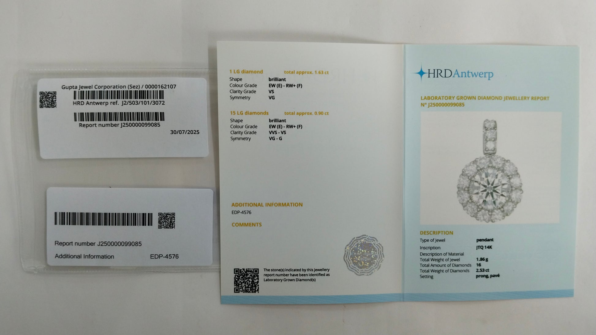 2.53-Carat Lab-Grown Diamond Round Brilliant Pendant - HRD Certified