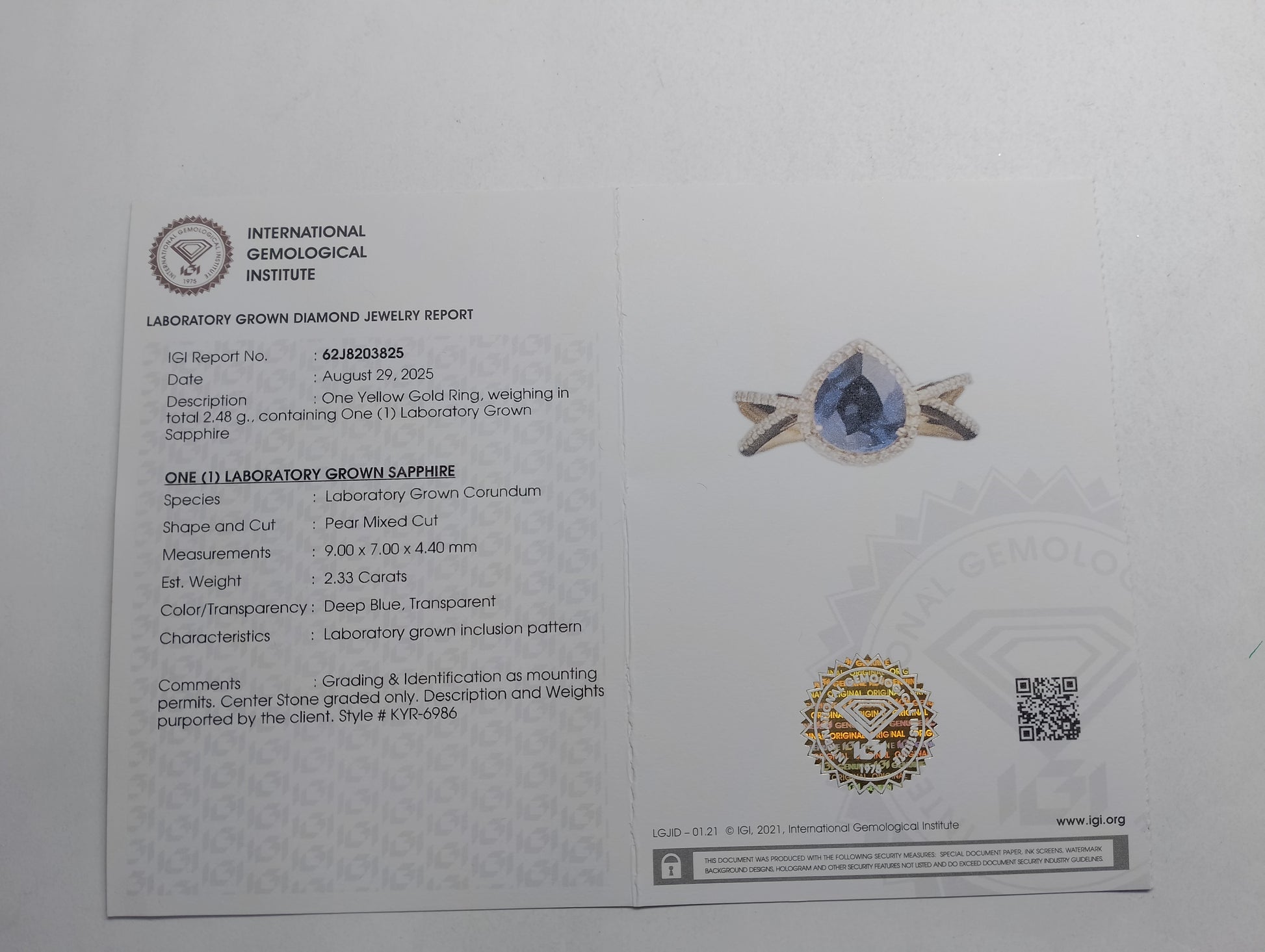 2.53 Ct Pear Mixed Cut Lab Grown Sapphire 14K Gold Ring