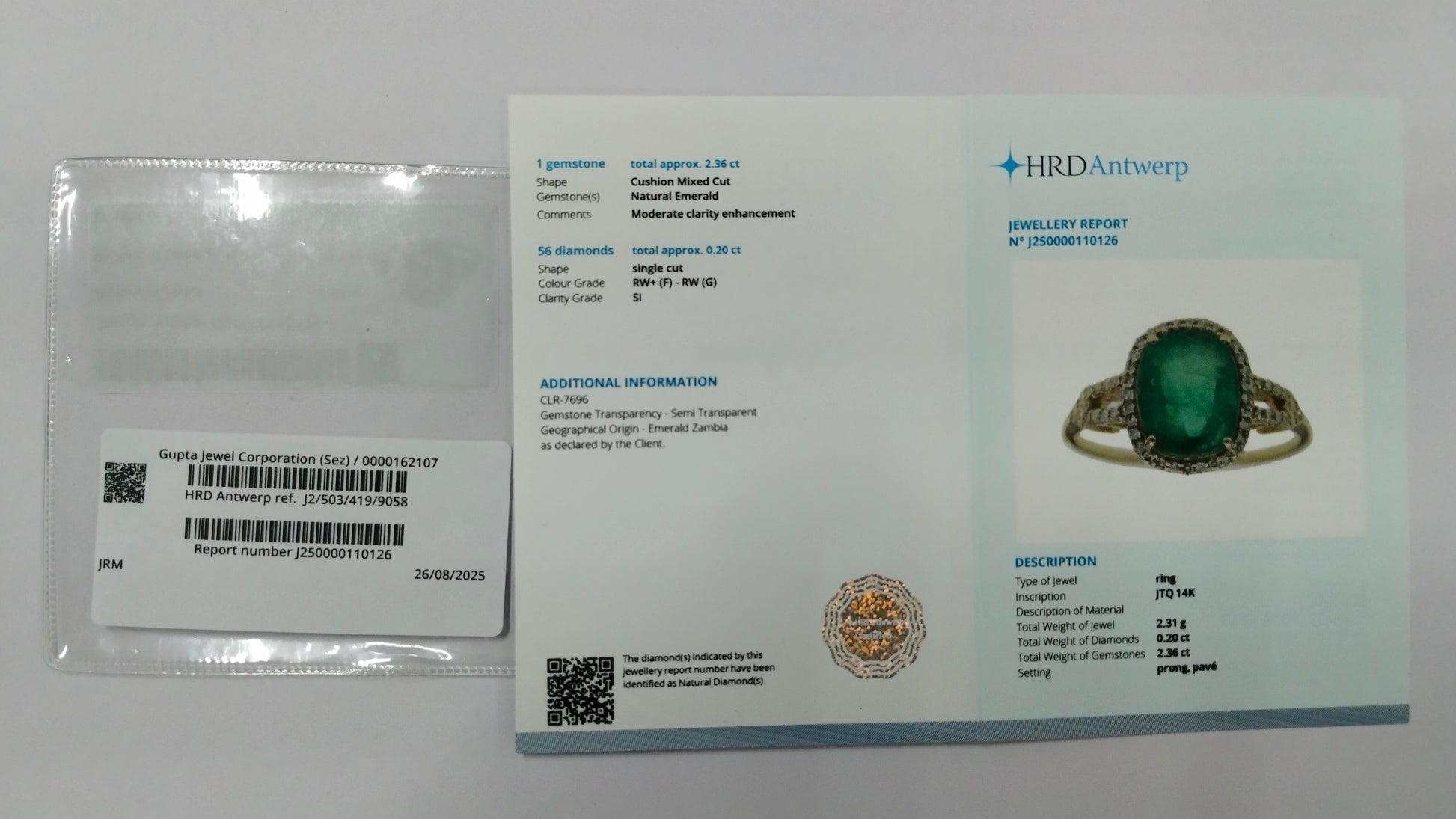 2.56 Ct Cushion Mixed Cut Natural Emerald 14K Gold Ring