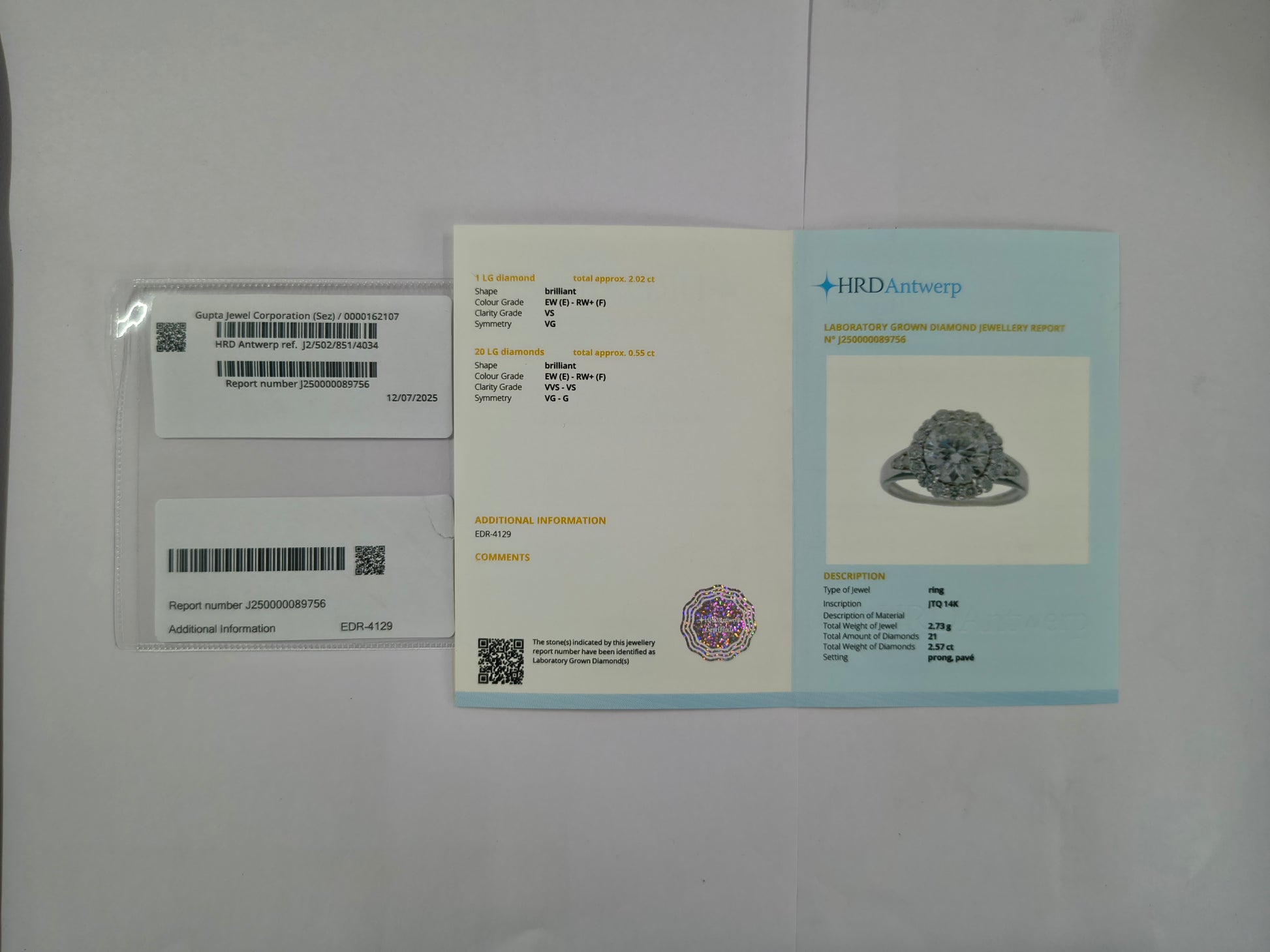 2.57 Carats Lab Grown Diamond 14K Gold Ring