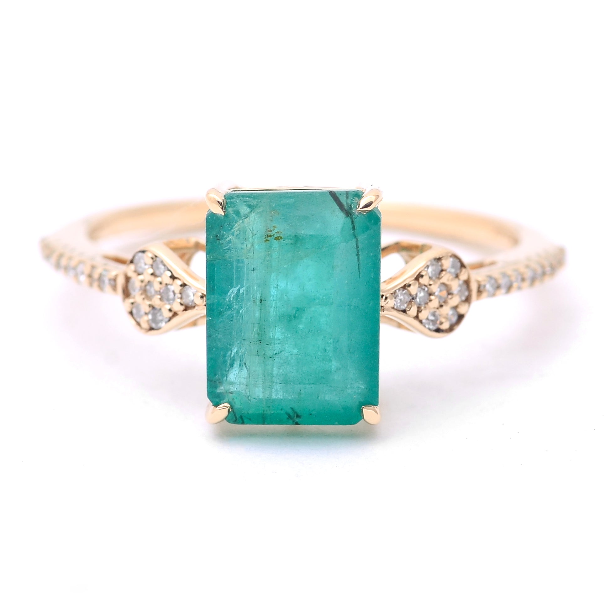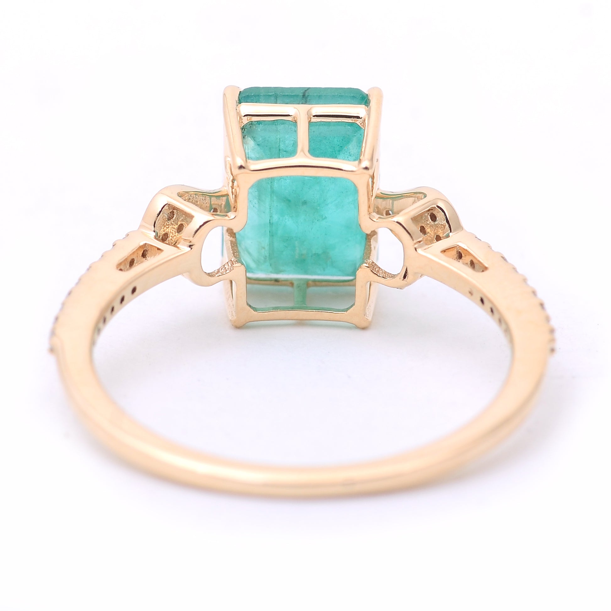 2.57 Ct Octagon Step Cut Natural Emerald 14K Gold Ring